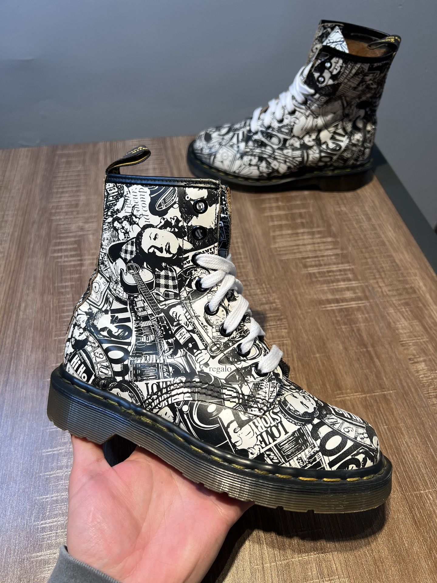 Dr Martens Size 6 Womens Black & White Images Retro Boots Made in England
