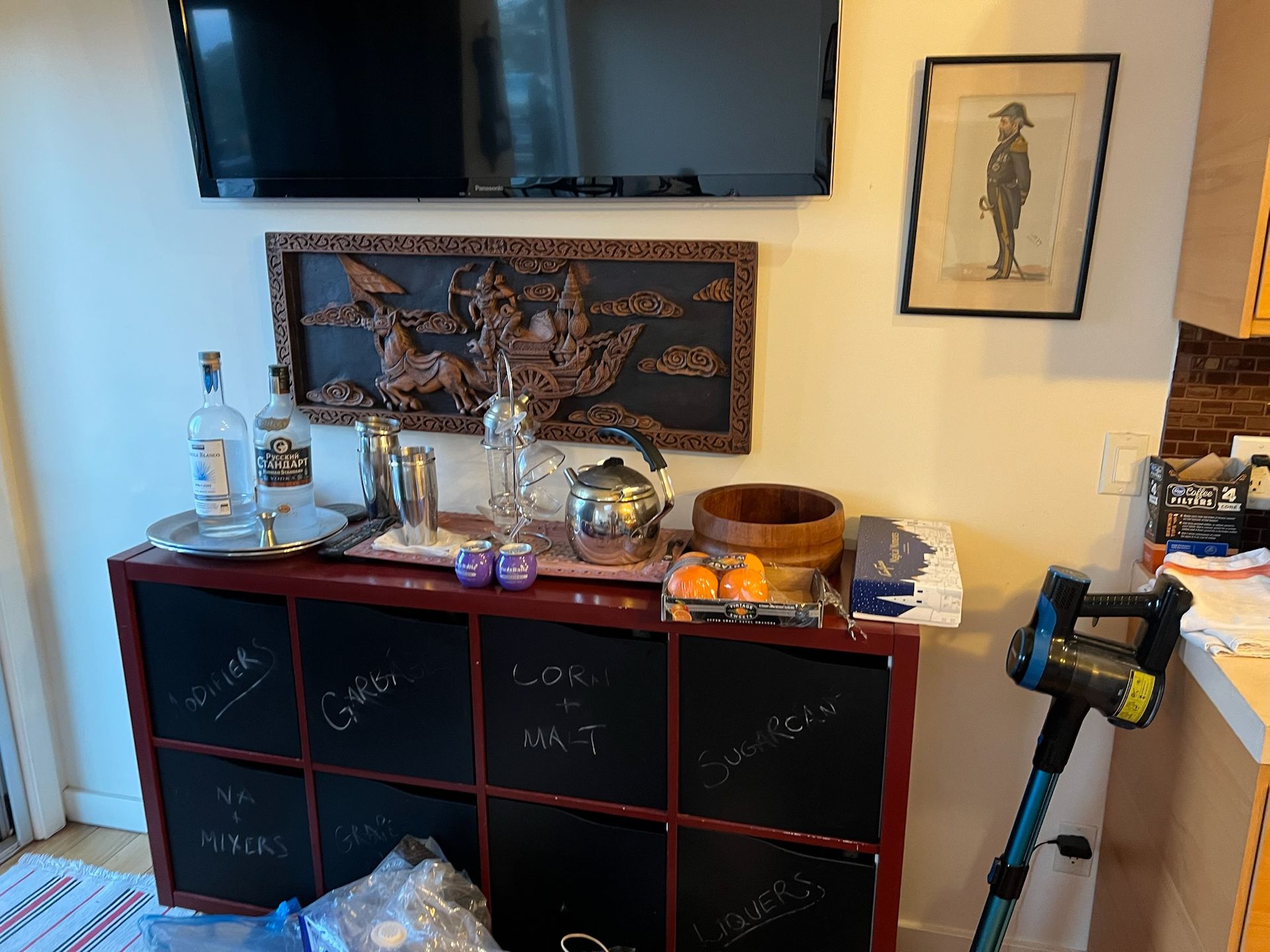 Great bar / tv console. Too large for new place. Check out other items as in the process of moving.