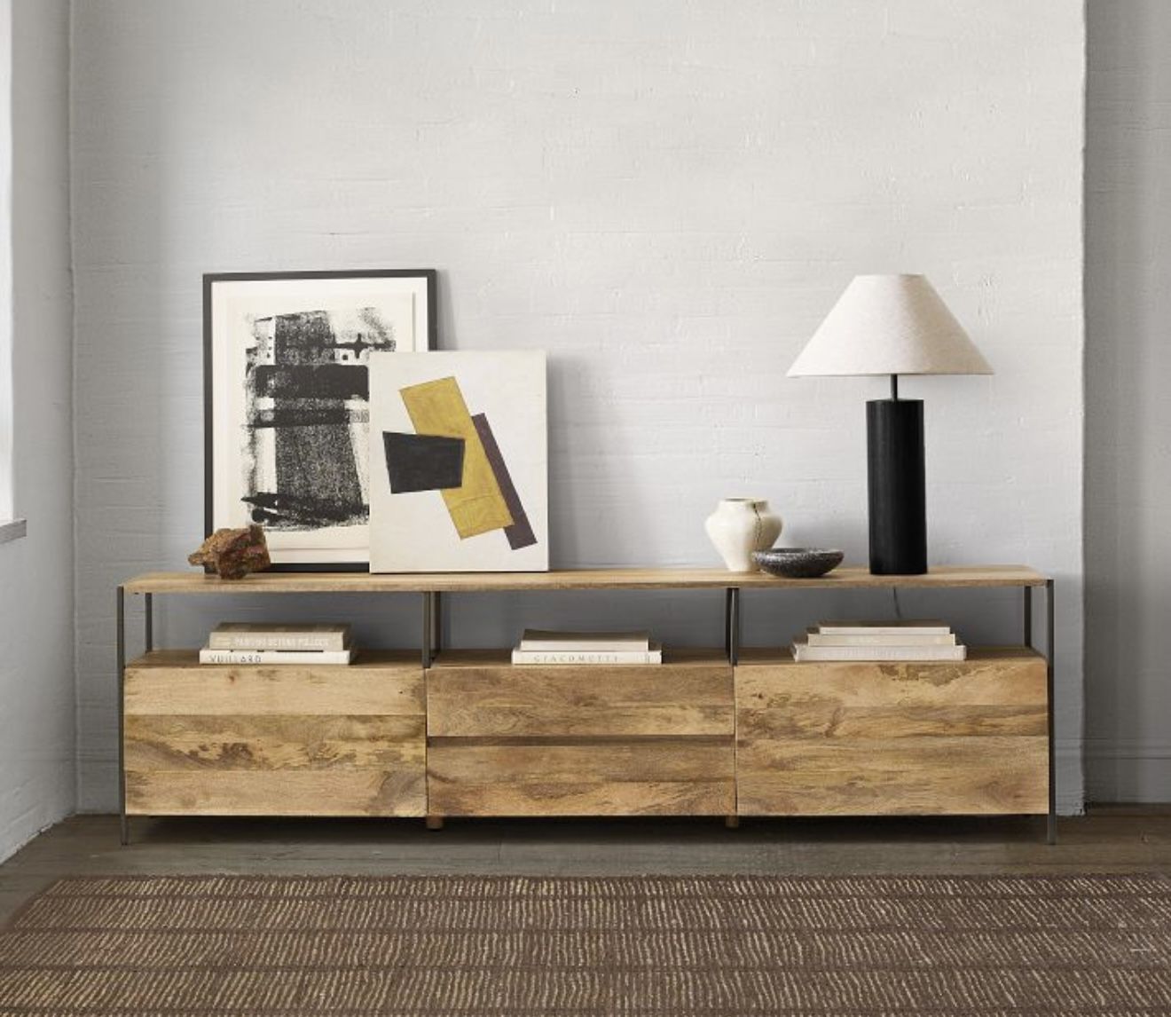 West Elm media console Current full price $1,900 80"w x 16"d x 22.5"h. 2 small drawers and 2 large drawers Slight marks as shows on last picture Still need to remove some corner protection I had placed for my little one Must be picked up in Boca