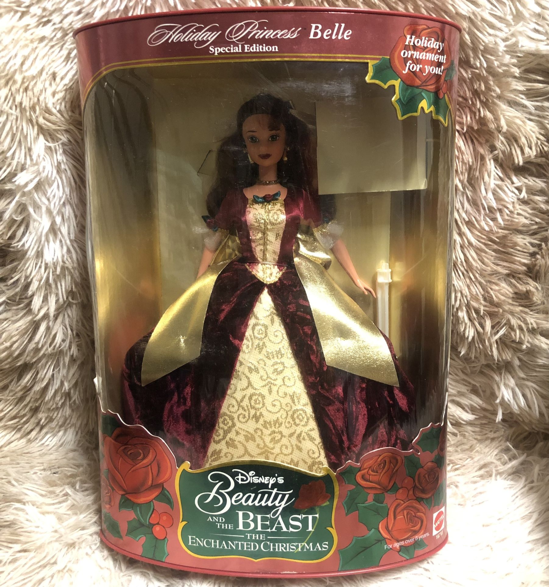 Disney Beauty and the Beast Holiday Princess Belle Doll 1997 Mattel 16710 w/ Ornament