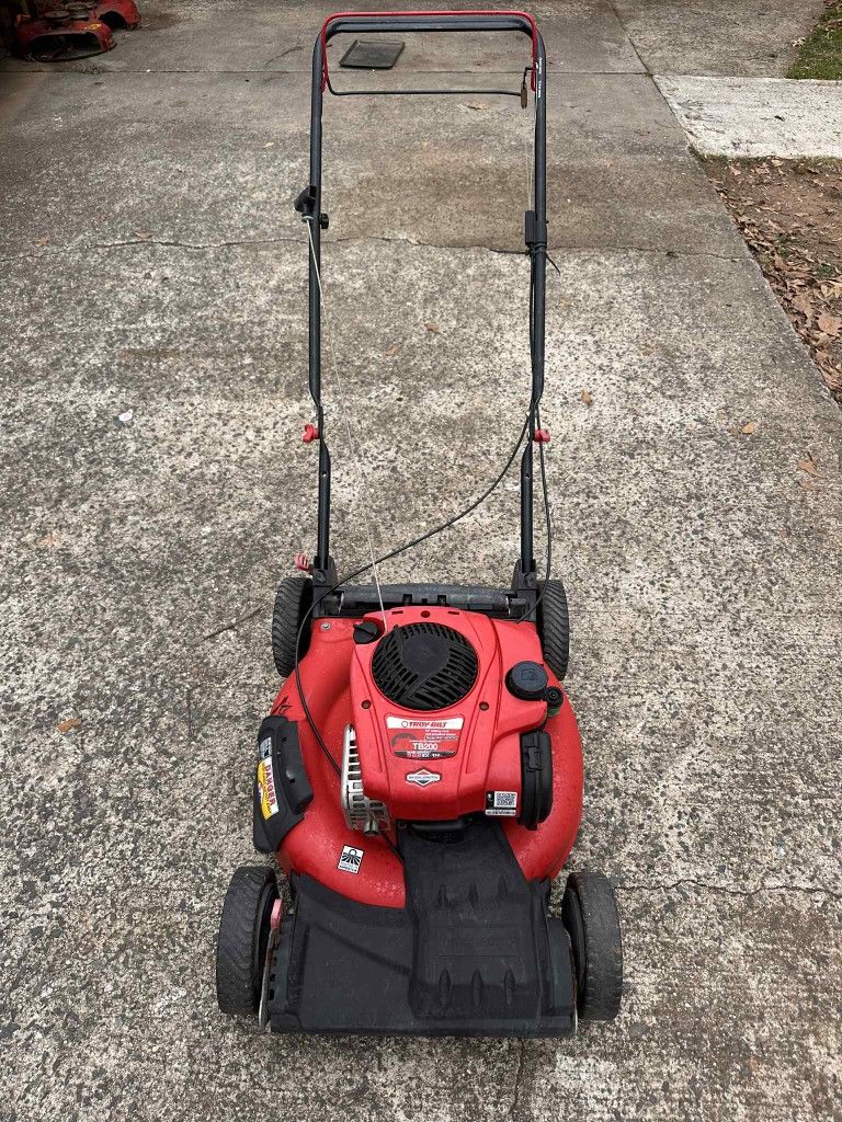 Troy-bilt self propelled lawn mower Starts and cuts great New Air Filter New spark plug Oil good and full All sale final as is Free gas can if needed with purchase of mower