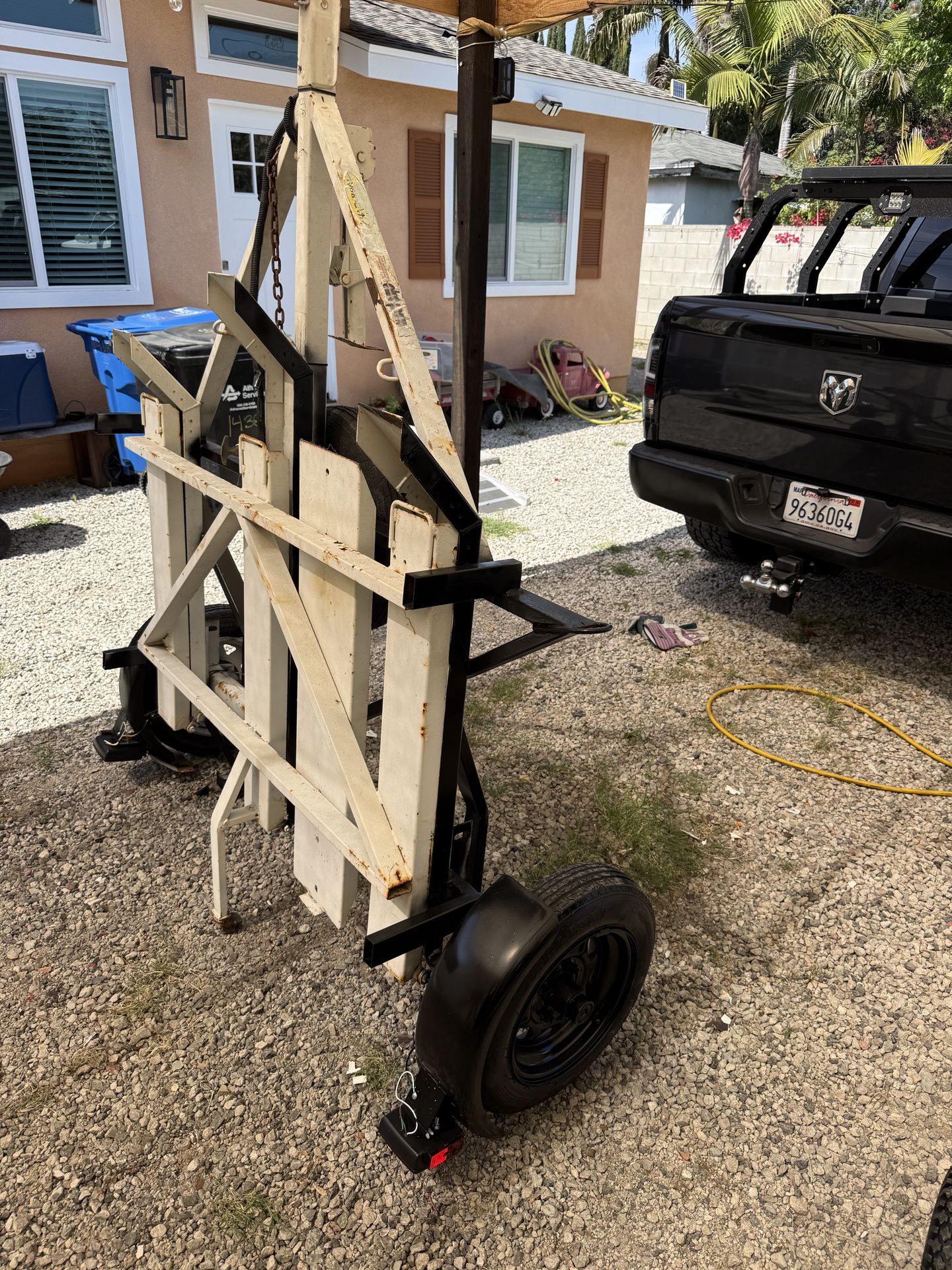 Foldable 5x8 cargo carrier Traila in very good condition,new tires,new set of lights,spare tire,title and permanent license plate,comes with ramp also for easy loading ,2200 pounds weight capacity