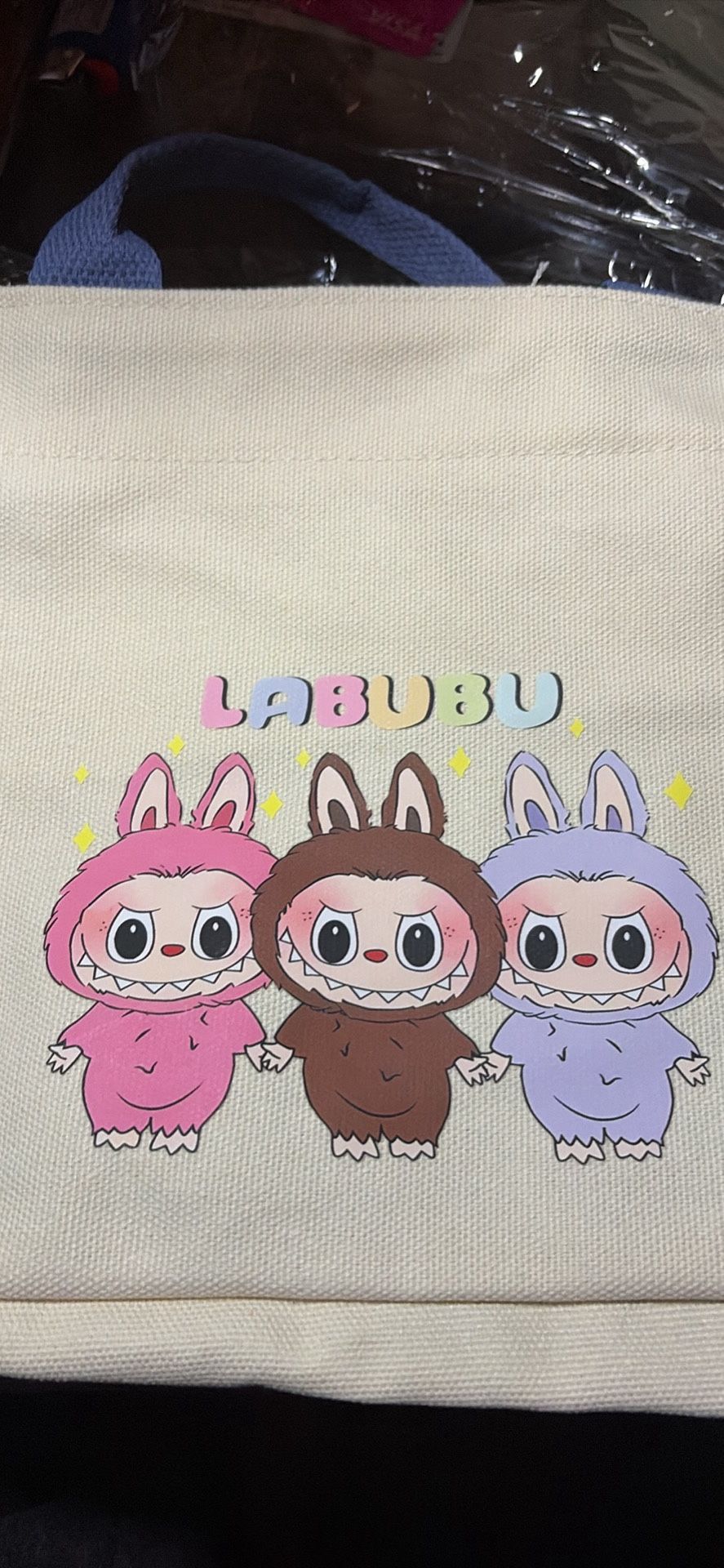Little Monsters Labubu tote Bag Available in 4 styles Made of canvas and has small straps on top with zipper closure. Comes with longer strap for more comfort.