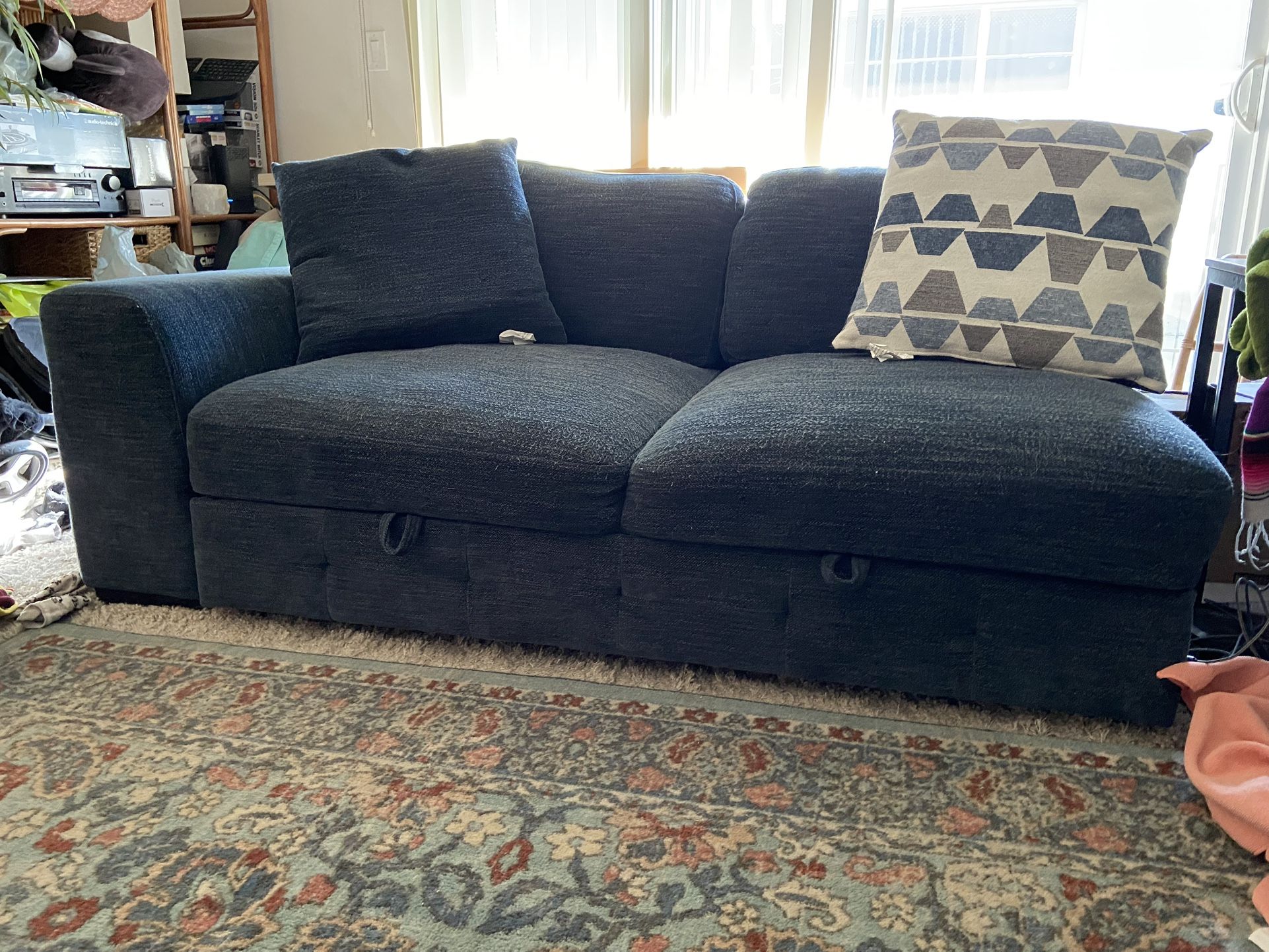 Pop-Up Sleeper Sofa 73" W! Works and feels super comfortable! No longer need it because we're moving cross country. Includes: right arm facing pop-up sleeper loveseat (73''W x 41''D x 35''H), no chaise included 2 years old. Not a pull out couch. From a house with 1 dog. Must be able to move yourself from a 2nd floor apartment. Pick up in GLENDALE.