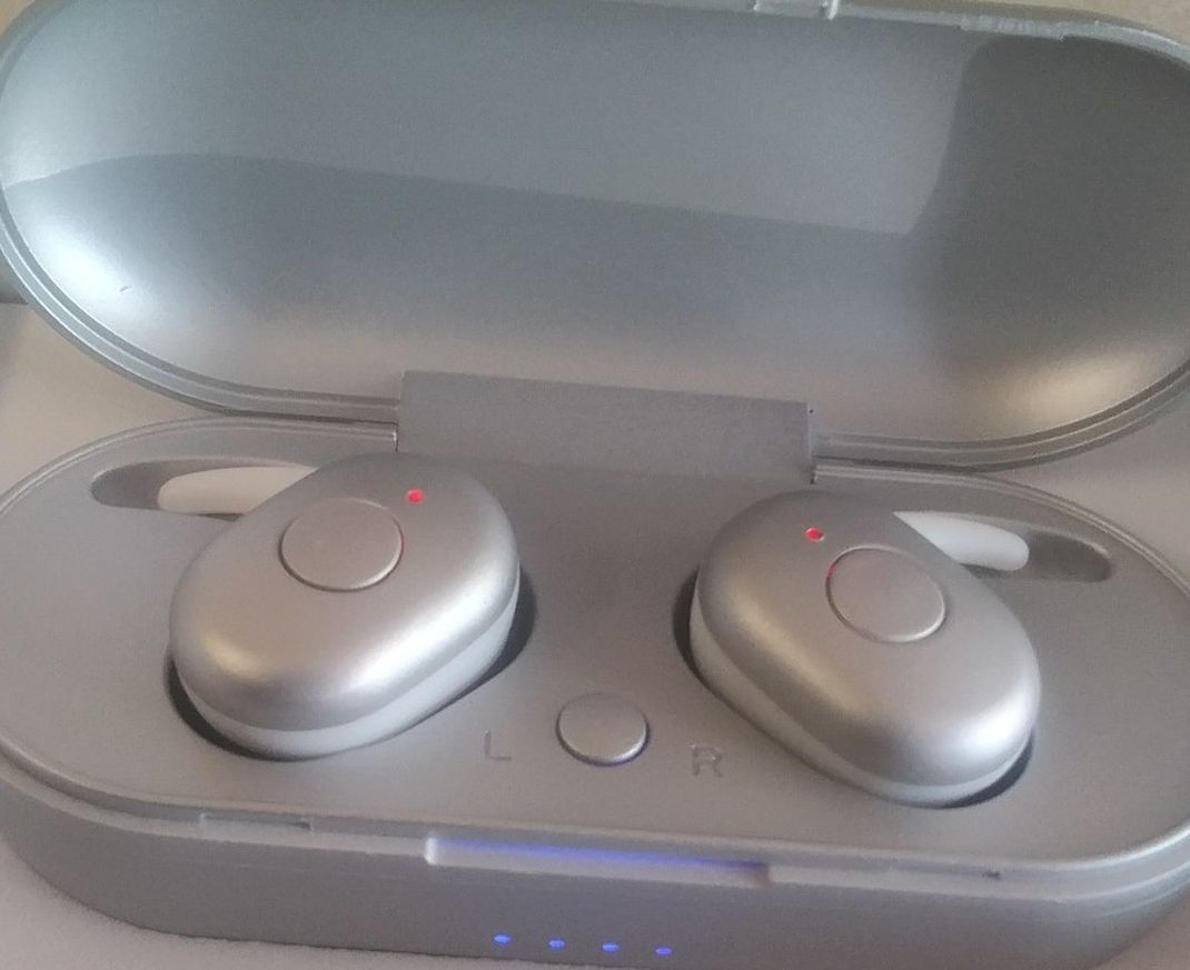 Stereo Earbuds, with charging case. 100hr stand by time. Speaker Sensitivity: 95+3db. Great for gym, running , work. Hands free. With great Stereo Sound. New in Box, Opened one to show