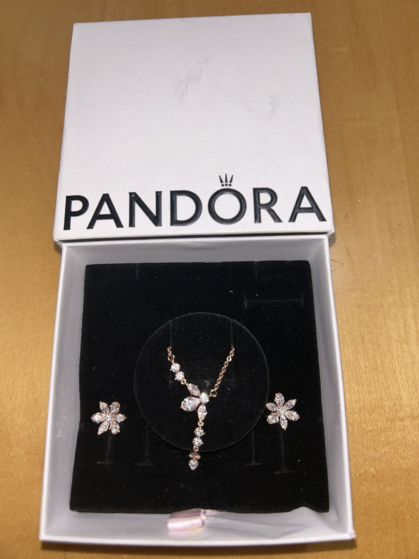 Sparkling Herbarium Cluster Drop Collier Necklace Adjustable Necklace with Lobster Clasp 14k Rose-Gold & Clear Cubic Zirconia 17.7 inches long Sparkling Herbarium Cluster Stud Earrings 14k rose gold plating