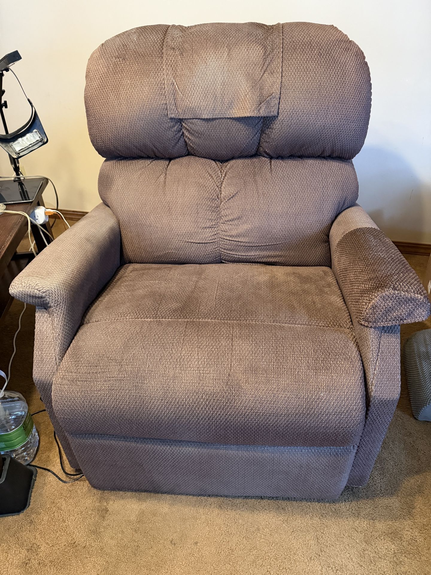 Beautiful auto recliner in brown. Purchased from Bone Store. Works great. Made for a big and tall person. $750 OBO