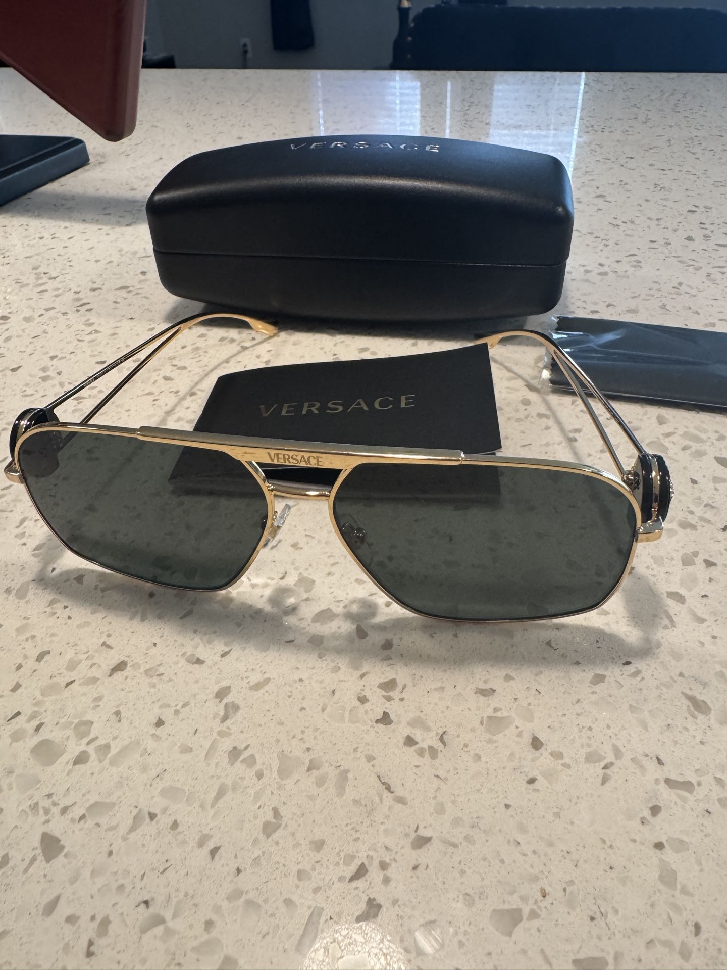 Brand new 100% AUTHENTIC, Never worn aviator style Versace sunglasses. Comes with box, wiping cloth, & booklet of authenticity.