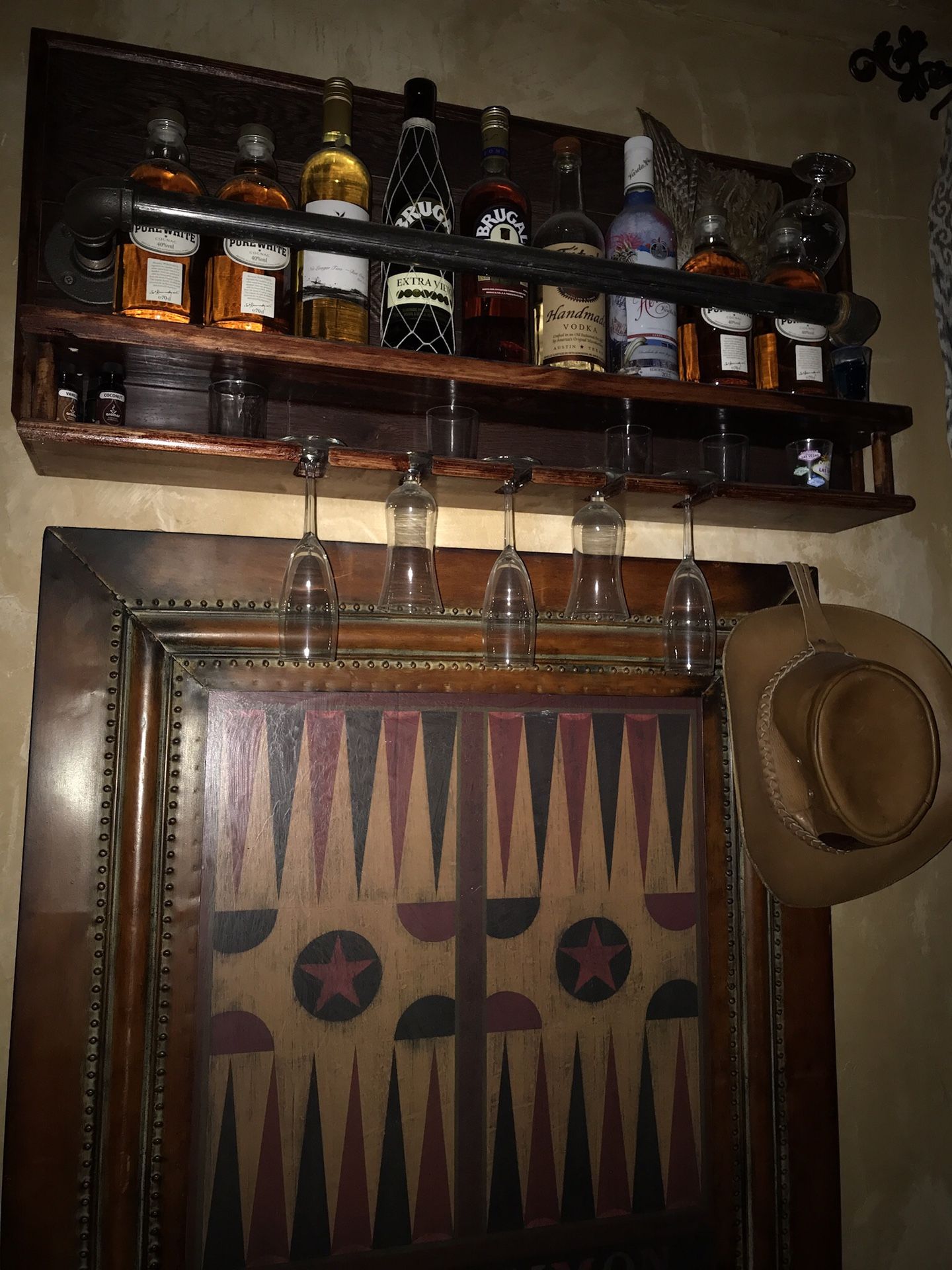 I built this bar about two years ago it’s a wall mount I also have the backgammon frame underneath it I have no space for it and I like it to go into a good home. It does not come with the liquor so don’t bother asking.