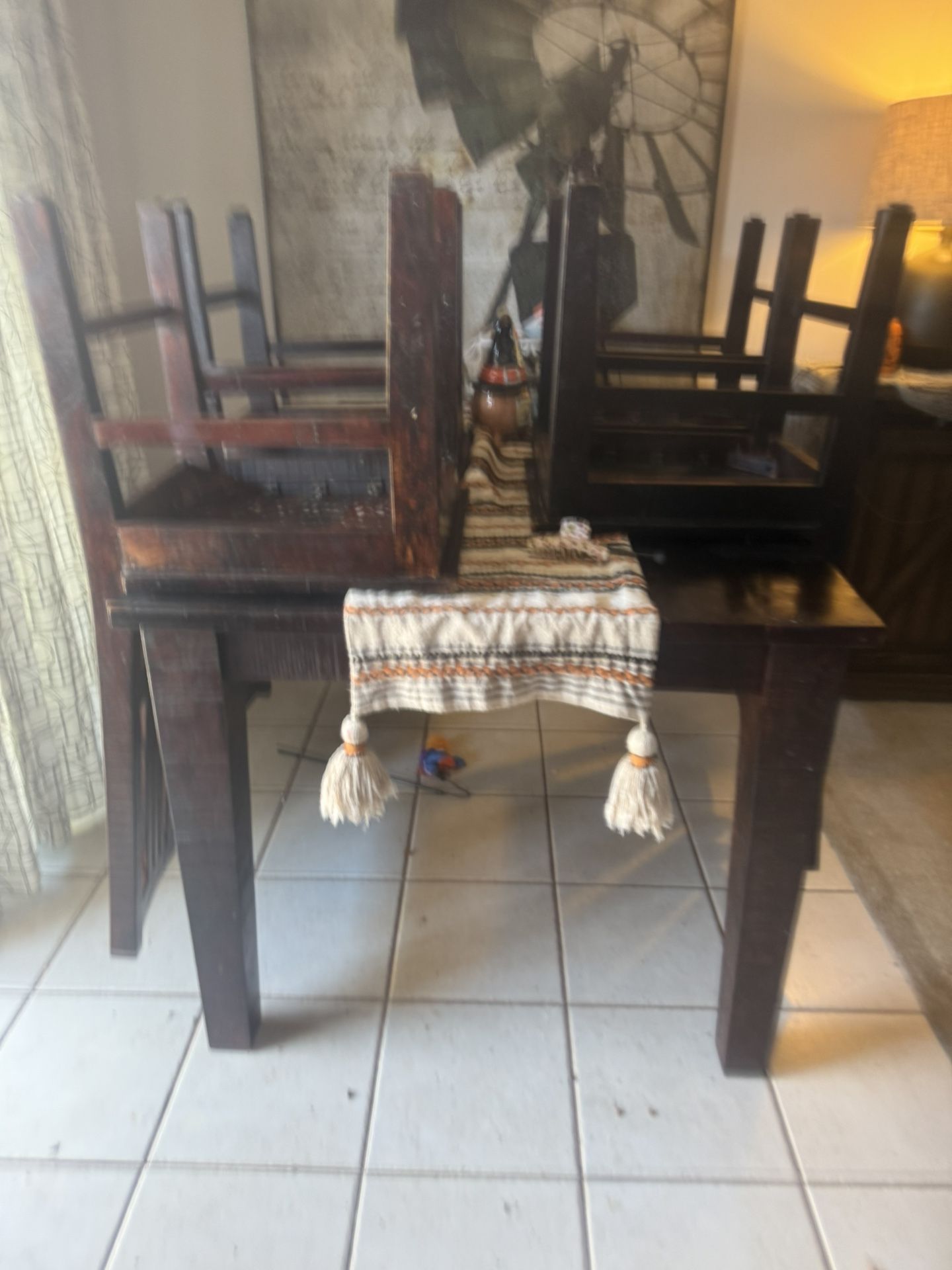 4 Chairs , Bench And Table. 6. Very Heavy Wood.