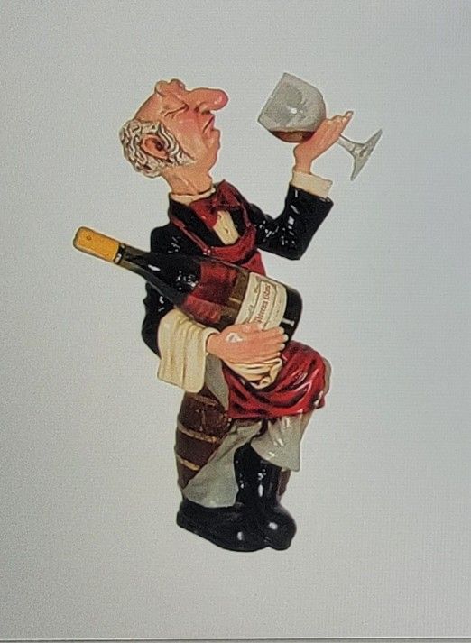 This a multicolor Connoisseur sitting on a barrel of wine. This will sit nicely displayed on a bar or shelf. It will be the topic of interest when seen wherever displayed.