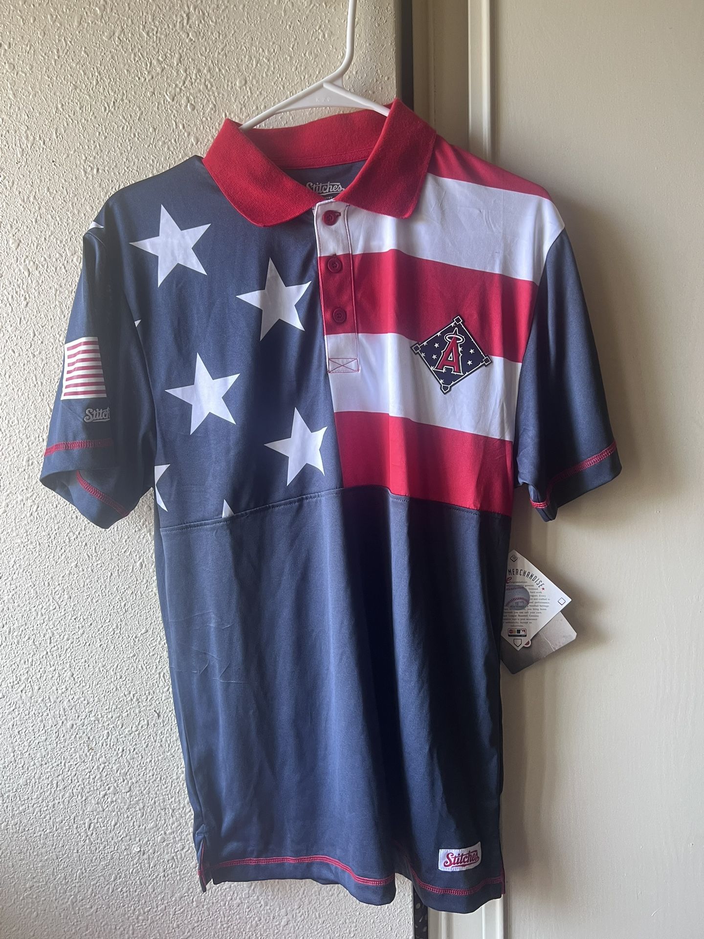 Stitches MLB Angels Polo Shirt Brand new with tags Baseball 4th of July American flag Size small