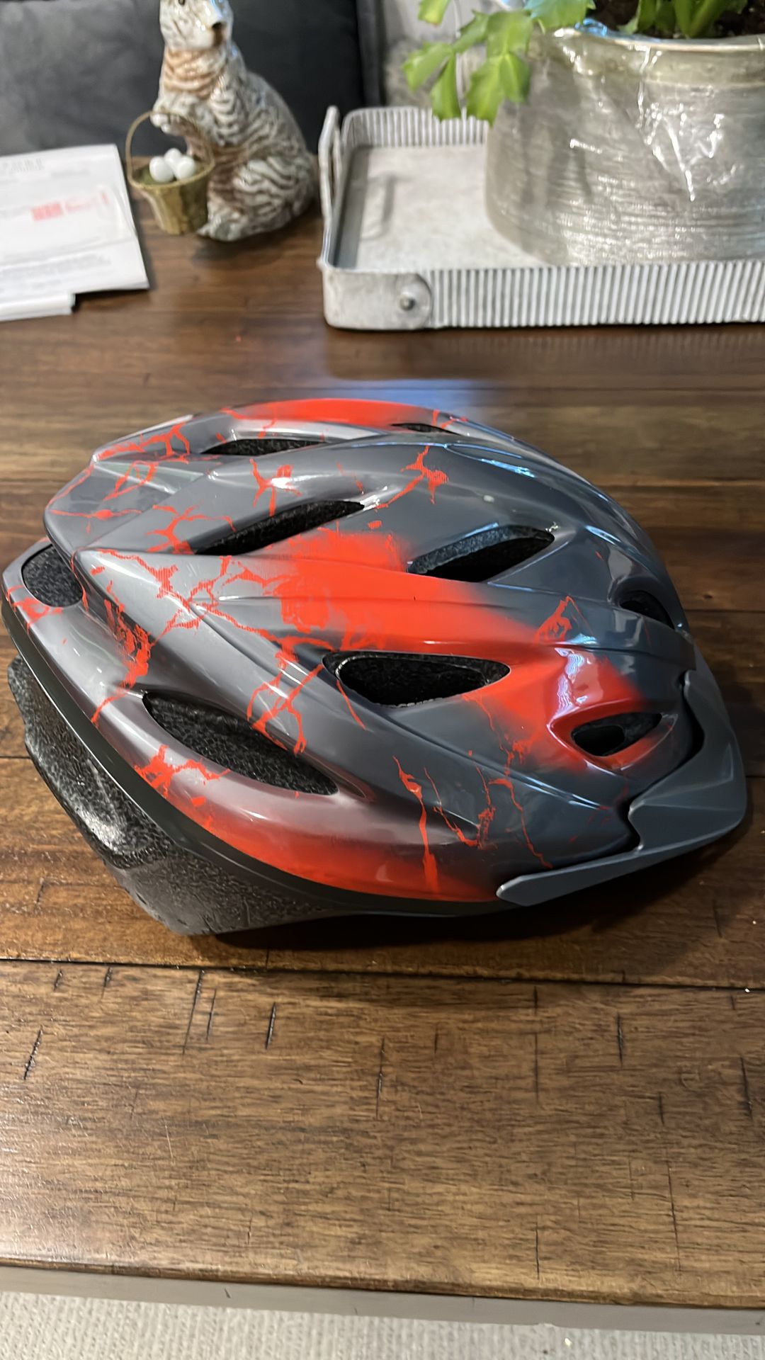 New bike helmet, by BELL, youth 10 - 14 yrs. 15.00. Reflectors on the back of helmet.