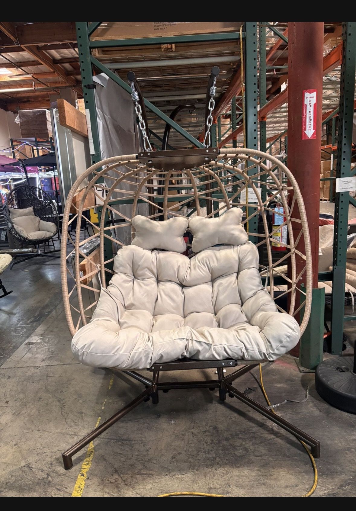 New Assembled Oversized 2-Person Patio Wicker Hanging Egg Swing Chair Indoor Outdoor Porch. 700lbs Weight Cap