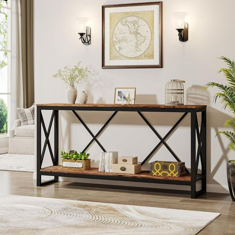 BRAND NEW IN BOX 70.9" Extra Long Console Table: Industrial & Rustic Sofa Table with Open Shelf, Rustic Brown Finmind 70.9" Extra Long Console Table seamlessly combines industrial chic with rustic charm. Its open shelf offers extra storage, making it the perfect addition to any home. 【70.9 Inches Extra Long】: Tastefully complements both rustic and modern decor. 【Multi-function Console Table】: Ideal as a sofa table, console table, corridor table, or TV cabinet. 【Sturdy Construction】: Features a thick board and quality metal tube frame for stability. 【Easy Assembly】: Includes labeled hardware for quick and hassle-free assembly.