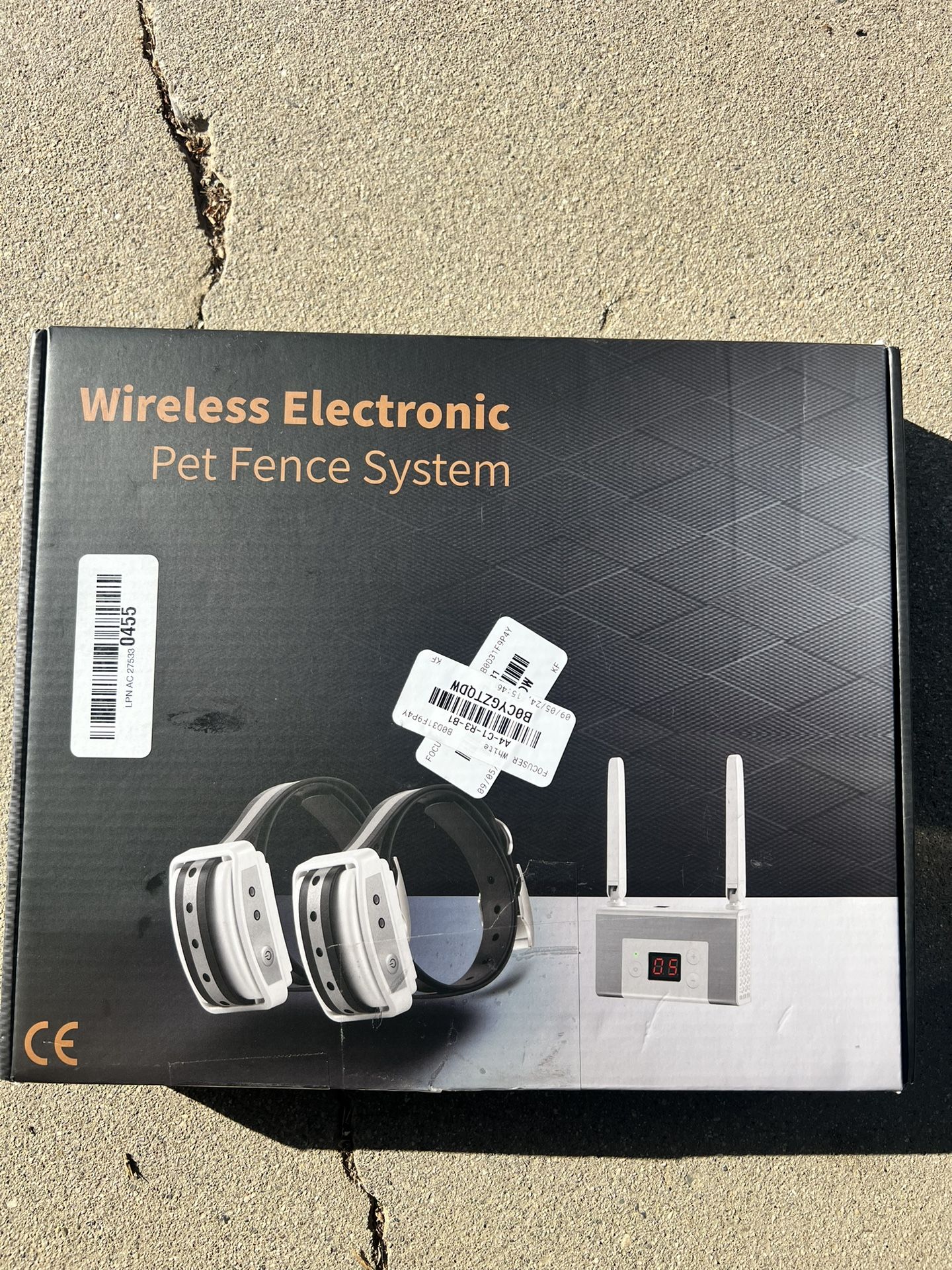 Electric Wireless Dog Fence System, Pet Containment System for 2 Dogs and Pets with Waterproof and Rechargeable Collar Receiver for 2 Dog Container Bo