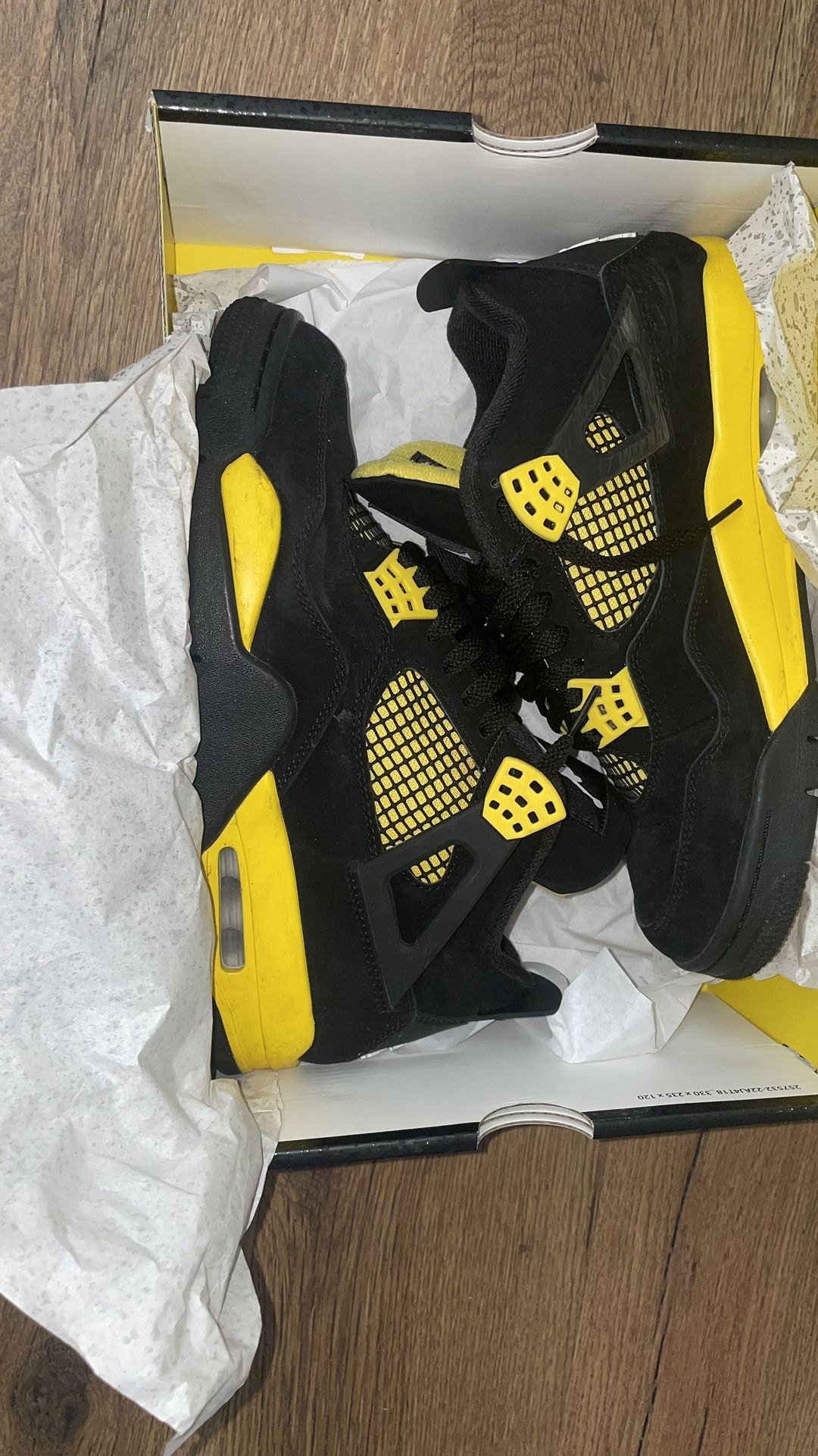 For sale: Air Jordan 4 Retro “Yellow Thunder” in men’s size 9. One of the most iconic Jordan 4 colorways, featuring a black leather upper with bold yellow accents and white midsole. Highly collectible and perfect for sneakerheads, streetwear, or everyday wear. ✨ Product Details: • Condition: Like New • Size: 8.5Men’s • Colorway: Black / Yellow / White • Includes: [Original box if available] 💯 Why these Jordans? ✔️ Iconic Air Jordan 4 “Yellow Thunder” design ✔️ Collectible & always in demand ✔️ Great for basketball, lifestyle, or sneaker collection
