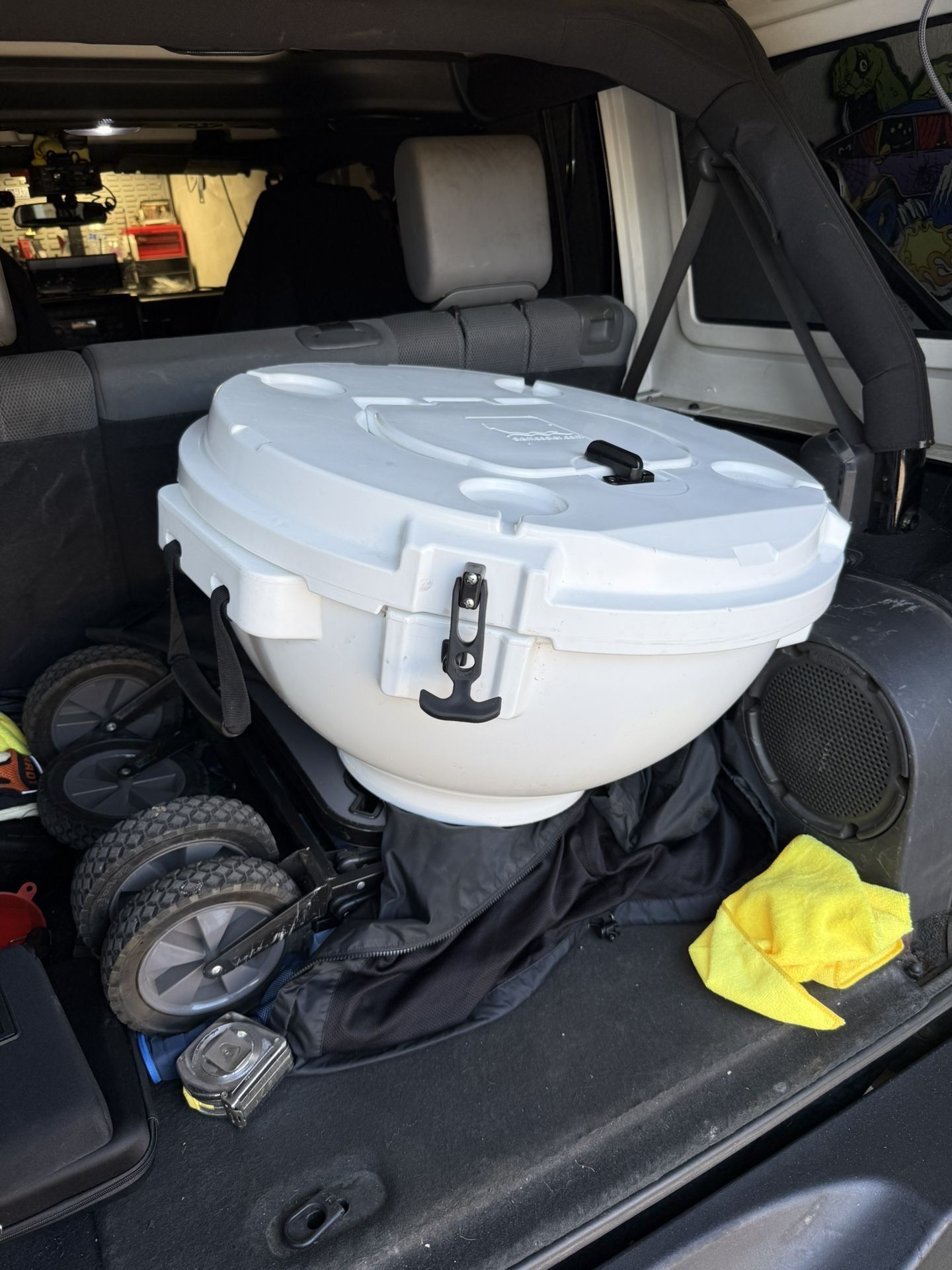 Up for sale is the Clam Cooler. This cooler was designed to be used on the river or in the ocean as a floating cooler. It is designed to hold 58 beverage cans with ice and ice will last over three days making this cooler perfect for camping or weekends at the river. It is also water and airtight so it can be used as dry storage going down the river. It has a ver useful design as a table with a smaller door on the lid and has a drainage plug on the side. This cooler is in excellent condition and you can own this one for the fraction of the price. Check the internet on the cost of one of theses bad boys. I like this better than my Yeti. Come pick this one up priced to sell fast! $250 cash located in Wilmington in the Los Angeles Harbor area 99744. IF THE AD IS UP YES ITS AVAILABLE.