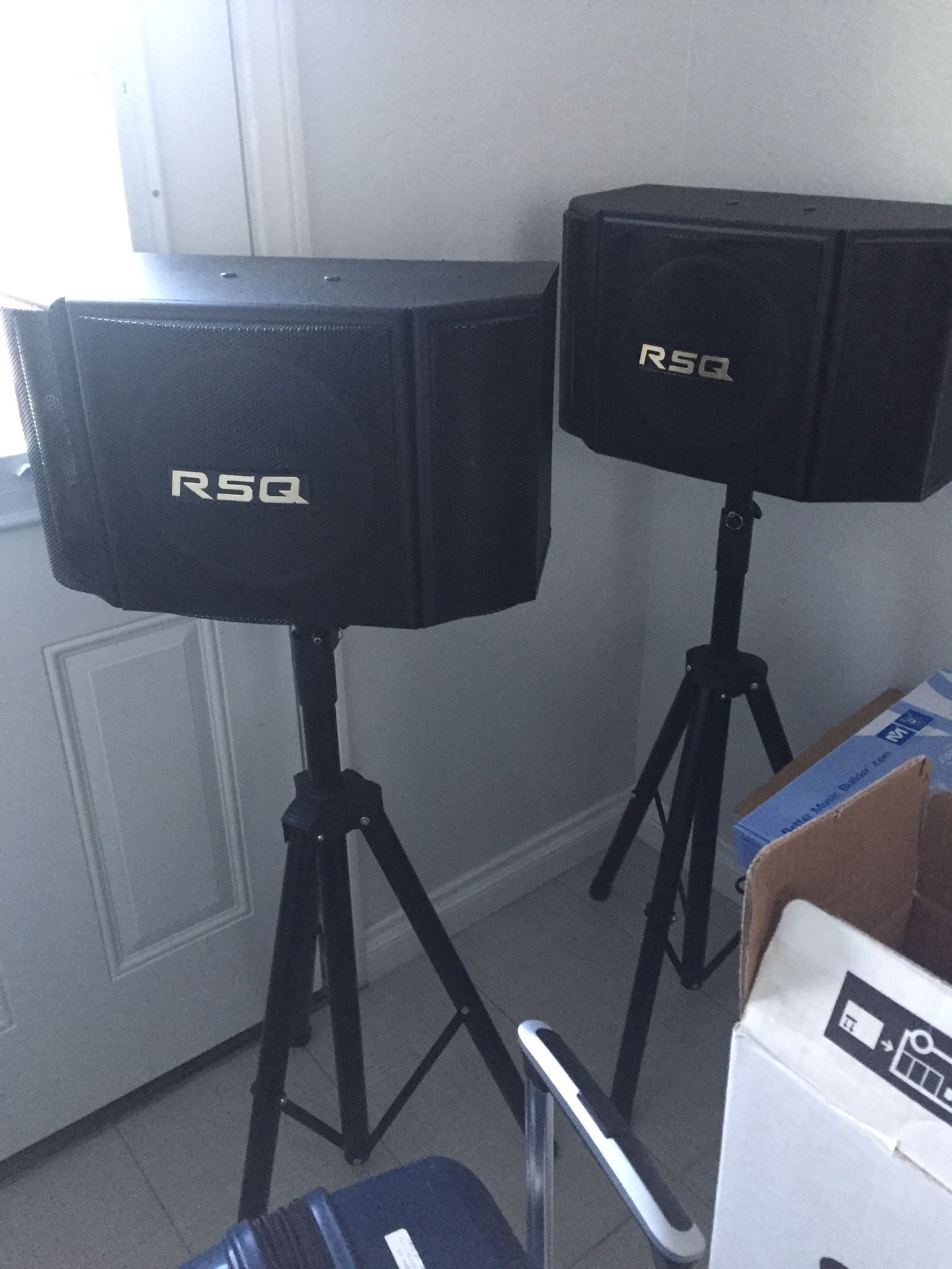 Pair RSQ SR-350 Karaoke professional speakers with stand. Like new and occasional used for parties and guests over at the house. Asking 185