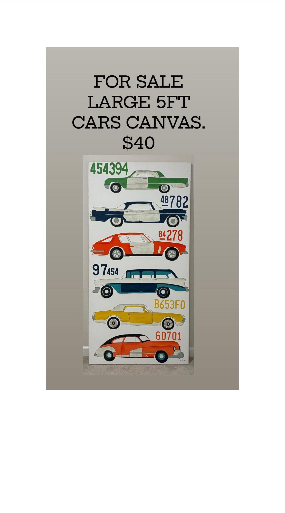 LARGE 5FT CARS CANVAS $40