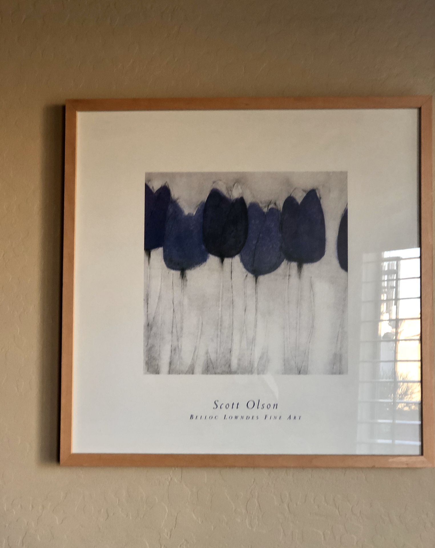 IKEA! Gorgeous Scott Olson - Belloc Lowndes Fine Art tulips print heavy oak frame. Framed print is 21”x21”.