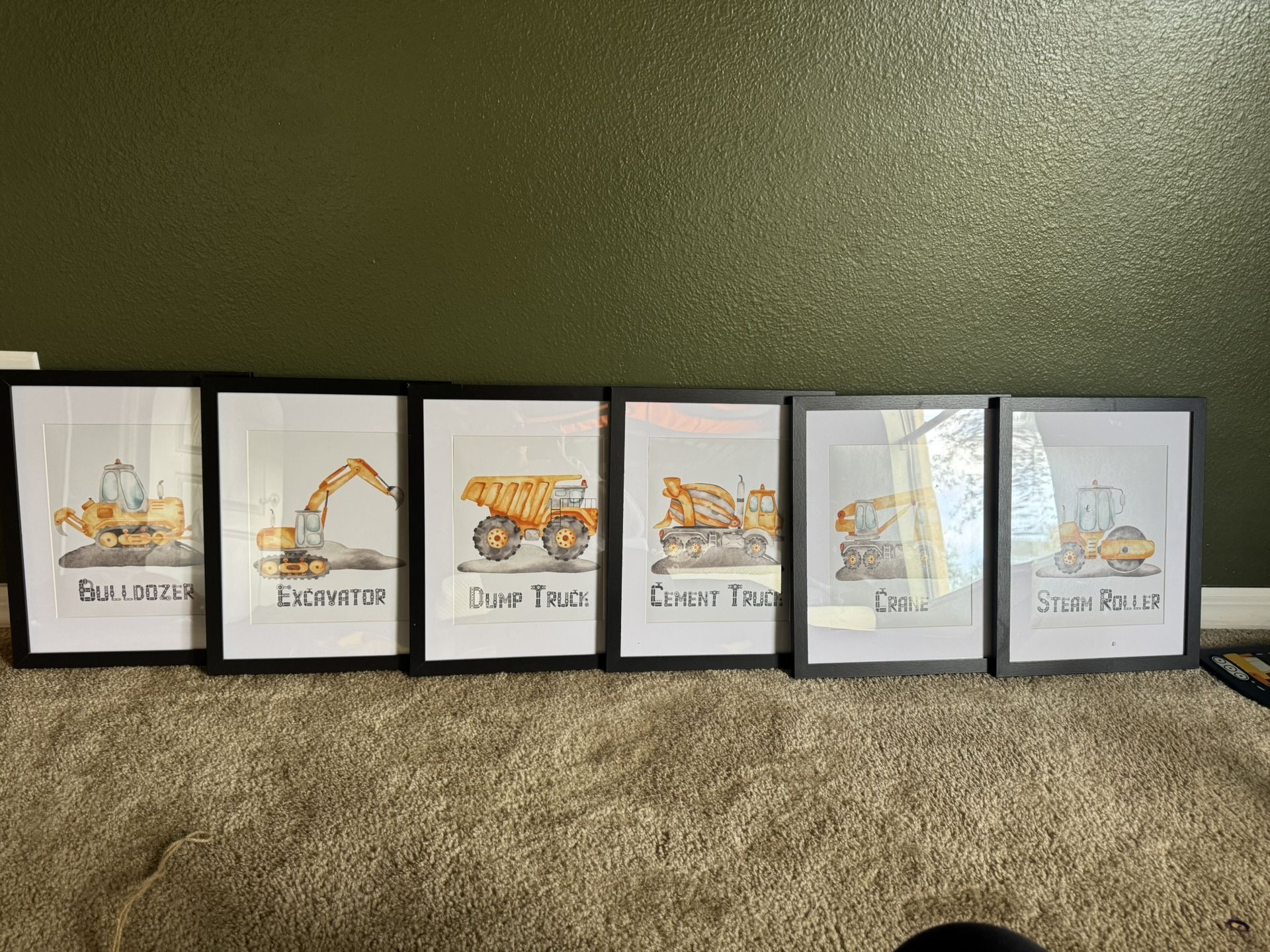 6 water color construction pictures for toddler bedroom