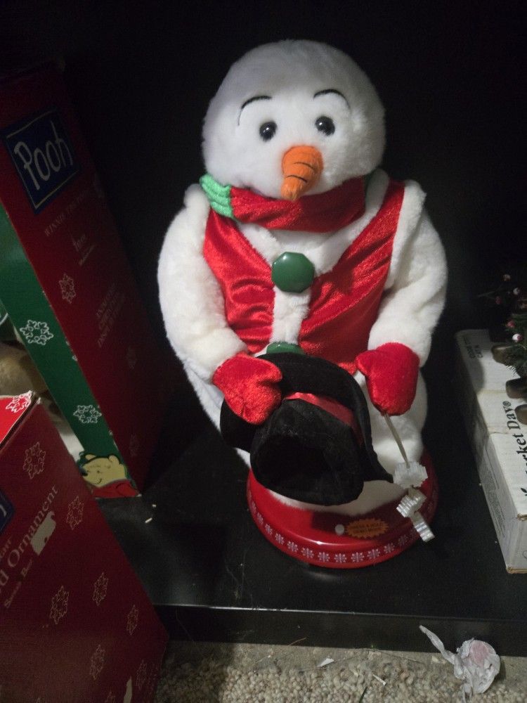 Set of 3 animated Christmas decorations. Pooh moves back and forth and Tigger can be plugged into light on tree etc... snowman sings song amd twirls icicles. From smoke free home.