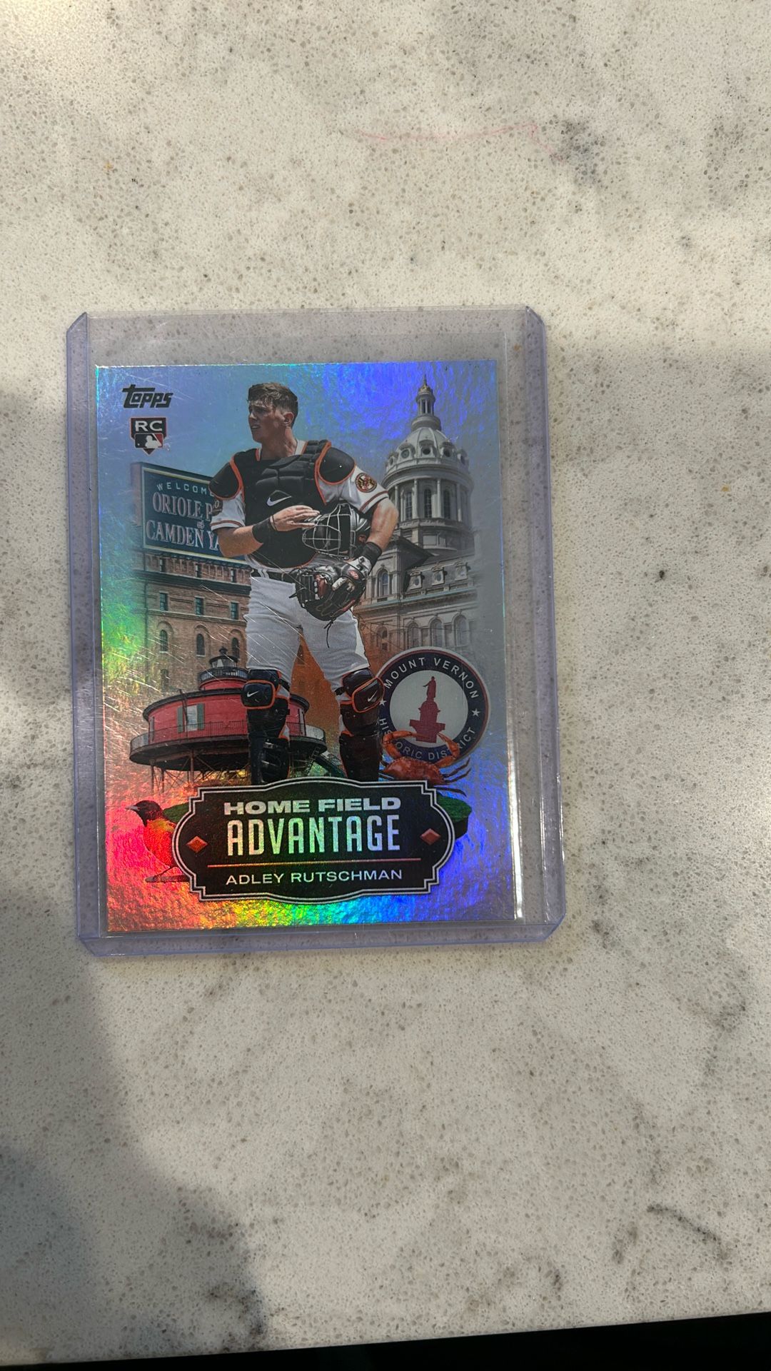 RARE Adley Rutschman Home Field Advantage rookie card #HA-8 from 2023 Topps Series 1! This is a Super Short Print (SSP) CASE HIT - one of the most sought-after Rutschman rookies available. Features stunning rainbow refractor-style finish with Baltimore's Inner Harbor cityscape. Card is in excellent condition - sharp corners, clean surface, no creases. **Details:** - 2023 Topps Series 1 - Card #HA-8 - Super Short Print (SSP) - Case Hit insert - Excellent ungraded condition - Stored in protective sleeve & toploader - Rookie card (RC) Perfect for any Orioles fan or serious baseball card collector! **Pickup in Lake Elsinore, CA** Cash only • Serious inquiries welcome Can meet at safe public location #AdleyRutschman #Orioles #BaseballCards #Topps #RookieCard #CaseHit #SSP #Collectibles