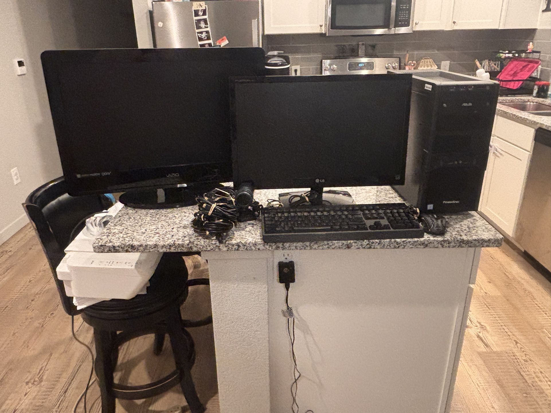 Powerspec, LG And Visio Monitors, Onn Mic, Hyper Keyboard And Mose