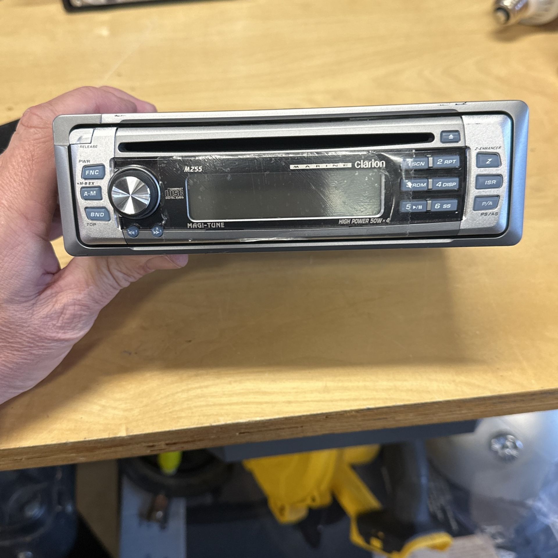 Brand new clarion on, marine receiver, with face plate, carrying case, and all wiring harness, but never installed in boat. Cannot get this one anymore.