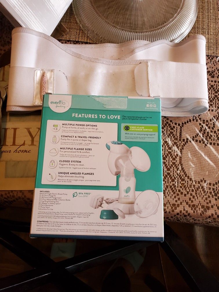Evenflo breast pump used 2 times and belly support used a month both are in good condition asking $20 for both