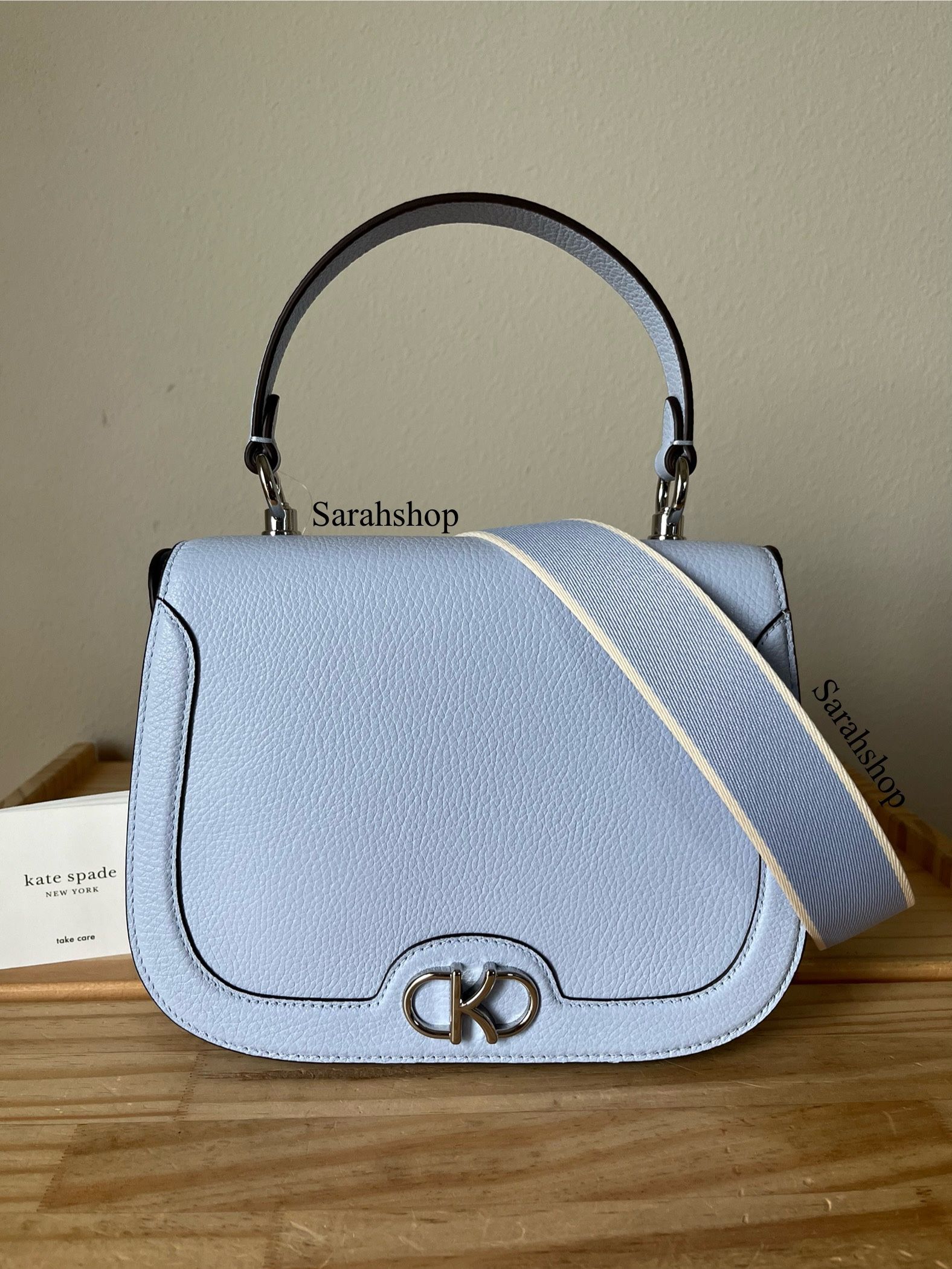 100% Authentic Brand new with tags Bag comes in original packaging KF527 Kyla Top Handle Saddle Bag Refined pebble leather Serenity and silver hardware 9”bottom (W) x 7” (H) x 3” (D) Handle with 4.5” drop Long strap with 24.5" drop
