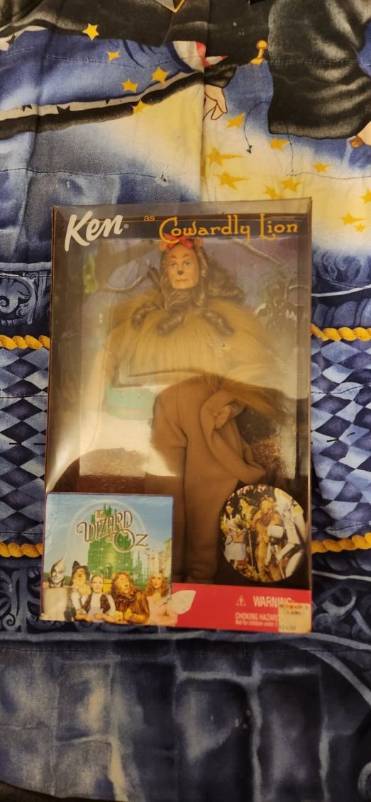 Collectors item: Ken as the cowardly lion from wizard of oz, $35. Still in the box, can come with the tin man and the scarecrow for $90