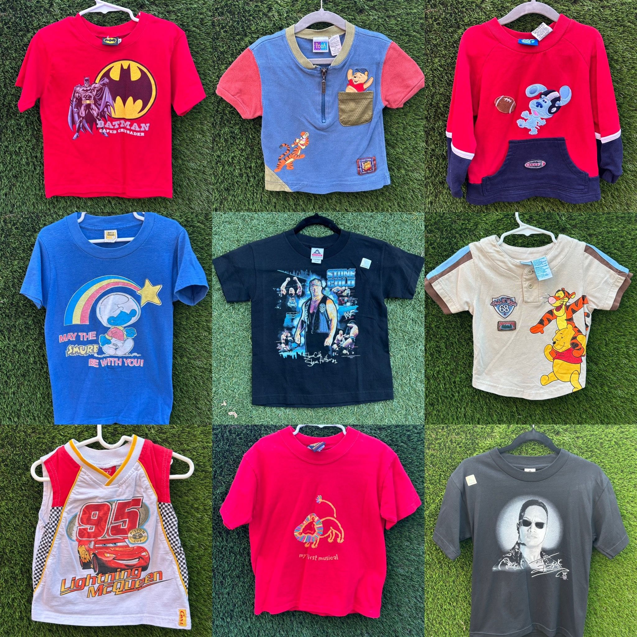 Please msg for price and size thank you !! Blues clues (SOLD) Cars (SOLD) Winnie the Pooh light brown jersey (SOLD) Smurf blue T-shirt (SOLD)