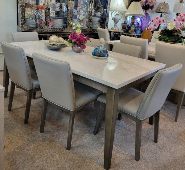 White Marble Top Dining Table Grayish brown 6 Chairs