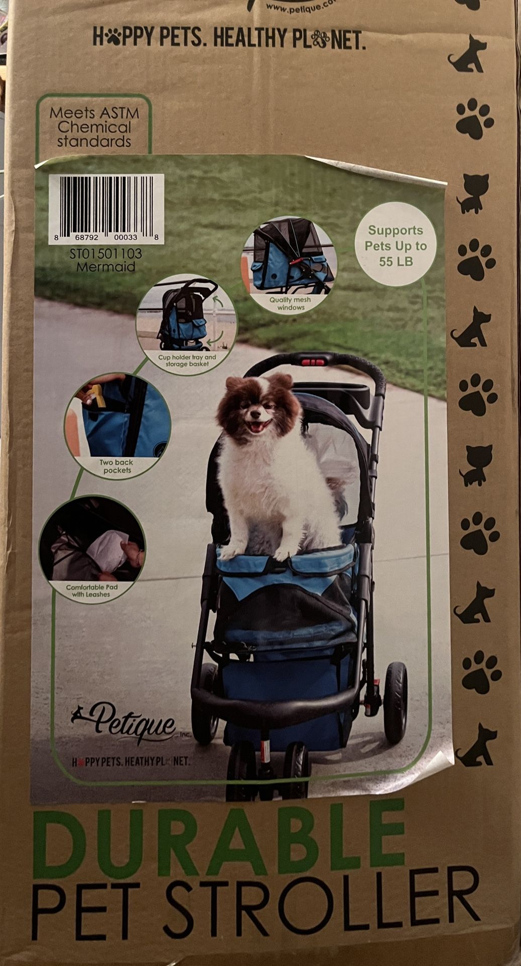 Dog stroller, holds up to 55lbs. Unopened box, never used.