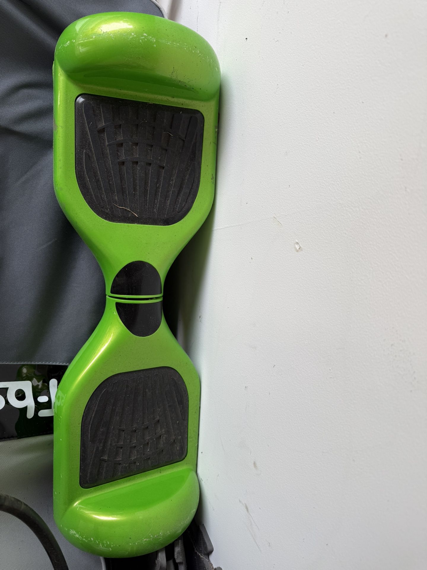 Fun and easy-to-ride hoverboard in bright green. Great for kids, teens, or casual riders! • Smooth ride with responsive balance sensors • Non-slip foot pads for better control • Rechargeable battery (charger not included) • Some light scuffs from normal use, but works perfectly