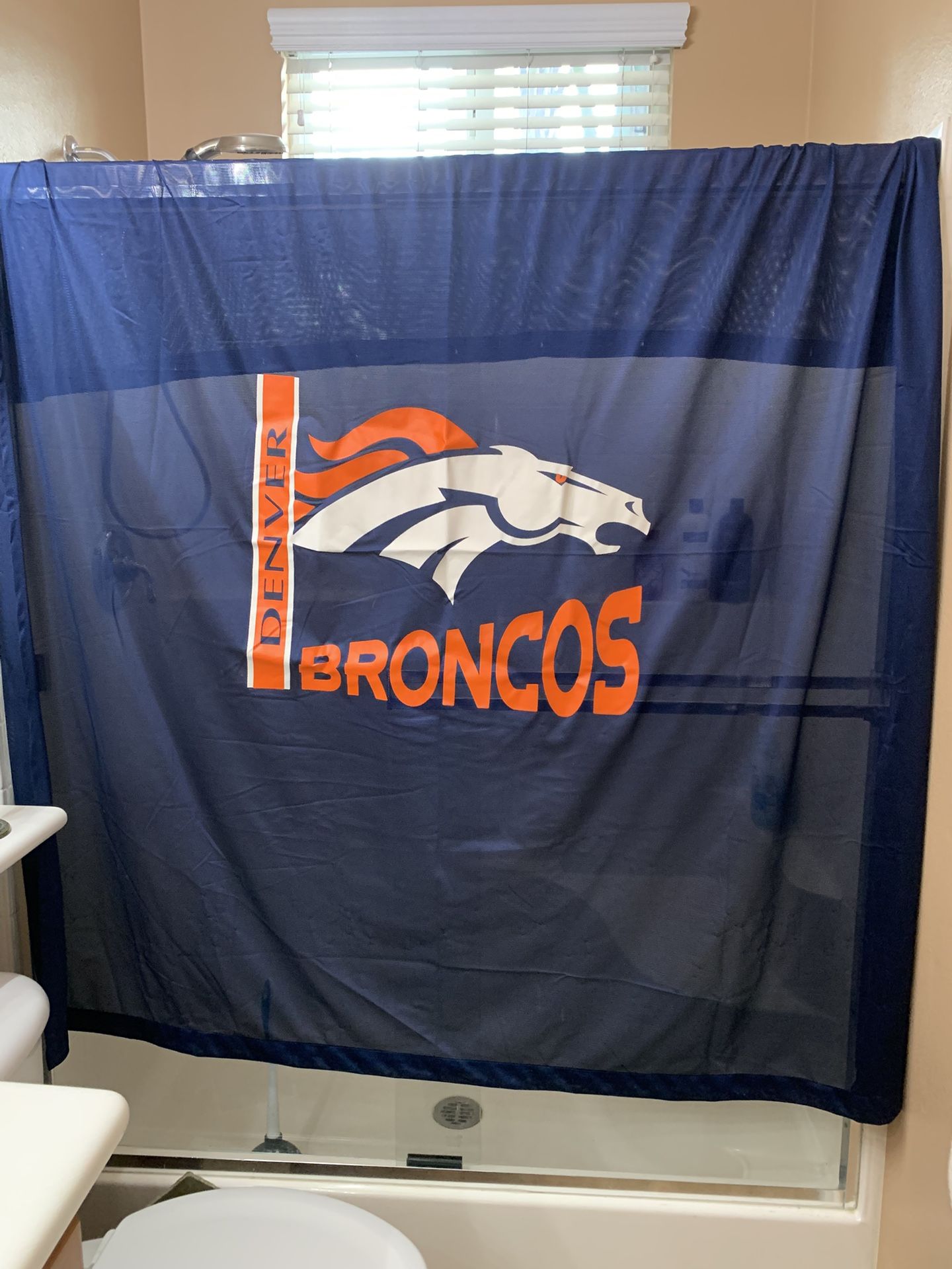 For the serious Broncos fans!!! Holes on top for shower hooks. Fits standard sized showers. Large logo on front. $30 FIRM Porch pick up in Upland. Cross posted. No holds.