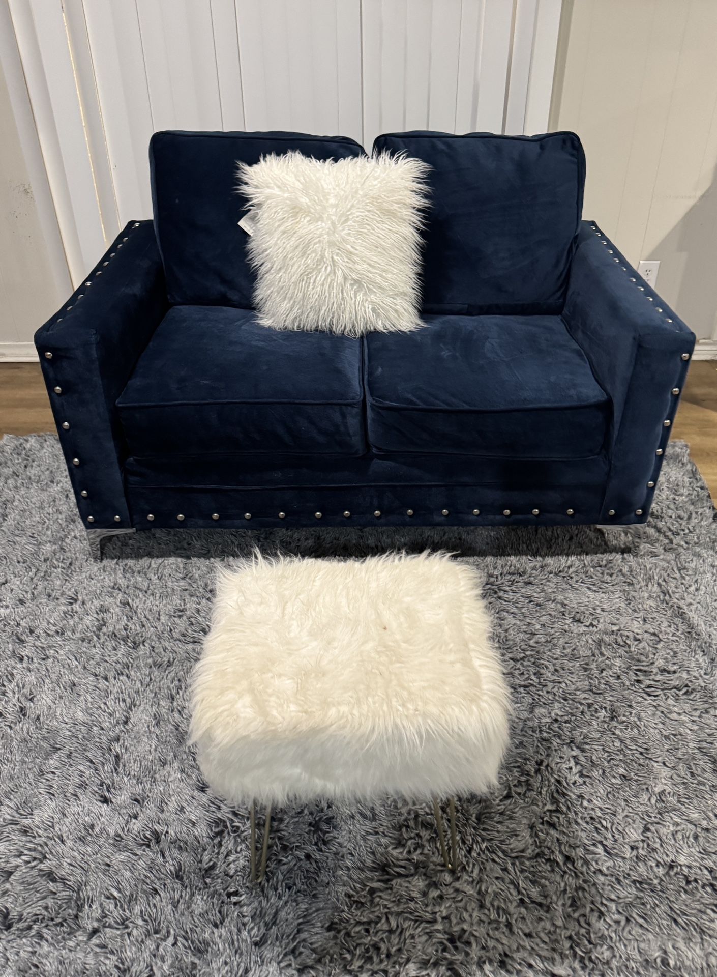 loveseat couch in excellent condition, no stains, no tears. Comes with chrome legs and includes the matching fluffy ottoman in front. Very clean and well-kept - ready for your living room! If you have any questions or want to come see it, just let me know. Or the best offer Se Habla Español