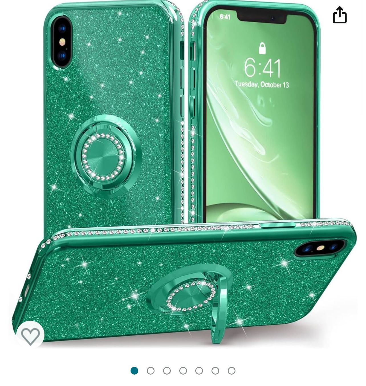CHEZEAL Compatible with iPhone X Case Glitter 5.8 inch,iPhone Xs Case with Ring Stand, Full Body Slim Fit Cute Sparkle Diamond case for iPhone X/iPhone Xs Case Women Girls - Pine Green
