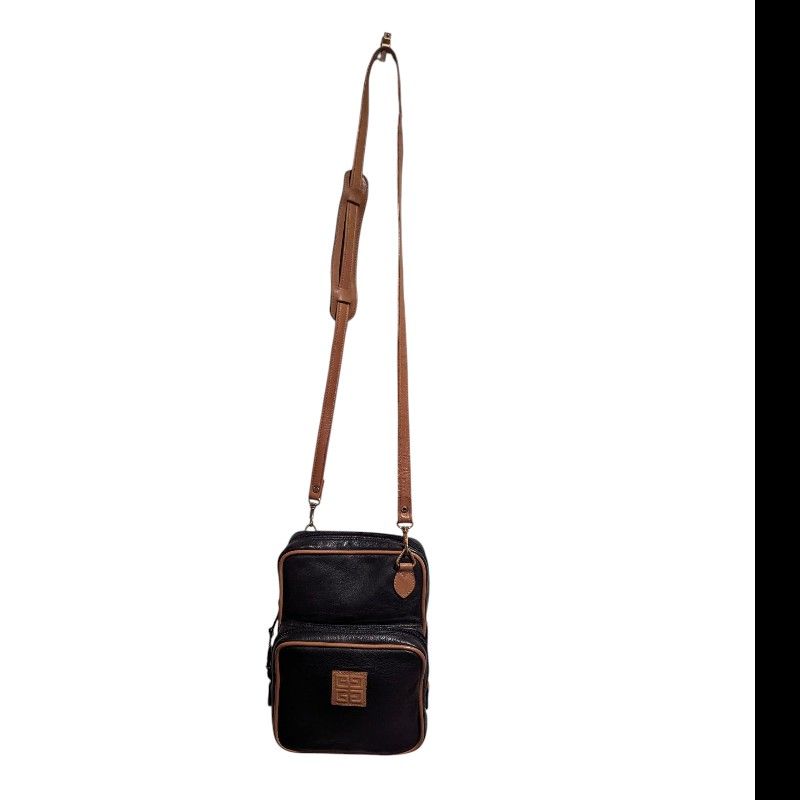 Experience the fusion of heritage and modern sophistication with this exquisite Givenchy crossbody bag. Crafted with meticulous attention to detail, its sleek black exterior and rich brown accents offer a versatile elegance that transcends seasons and trends. Why you'll love it: Signature Style: Featuring the iconic Givenchy logo prominently displayed, showcasing your appreciation for enduring luxury. Premium Craftsmanship: High-quality construction ensures lasting beauty and durability for years to come. Effortless Versatility: The adjustable strap allows for comfortable crossbody wear, transitioning seamlessly from day to night, casual outings to elevated events. Practical Elegance: Thoughtfully designed with ample space and easy access for your essentials, combining practicality with high fashion. Discover the perfect blend of functionality and iconic design. Make a statement without saying a word. Condition: very good - Pre-loved No corner rubbing Start of a crack in the bottom piping(see pictures) Rubbing/chipping of the zipper pulls Zippers zip well Strap; No cracking, it does show some signs of rubbing