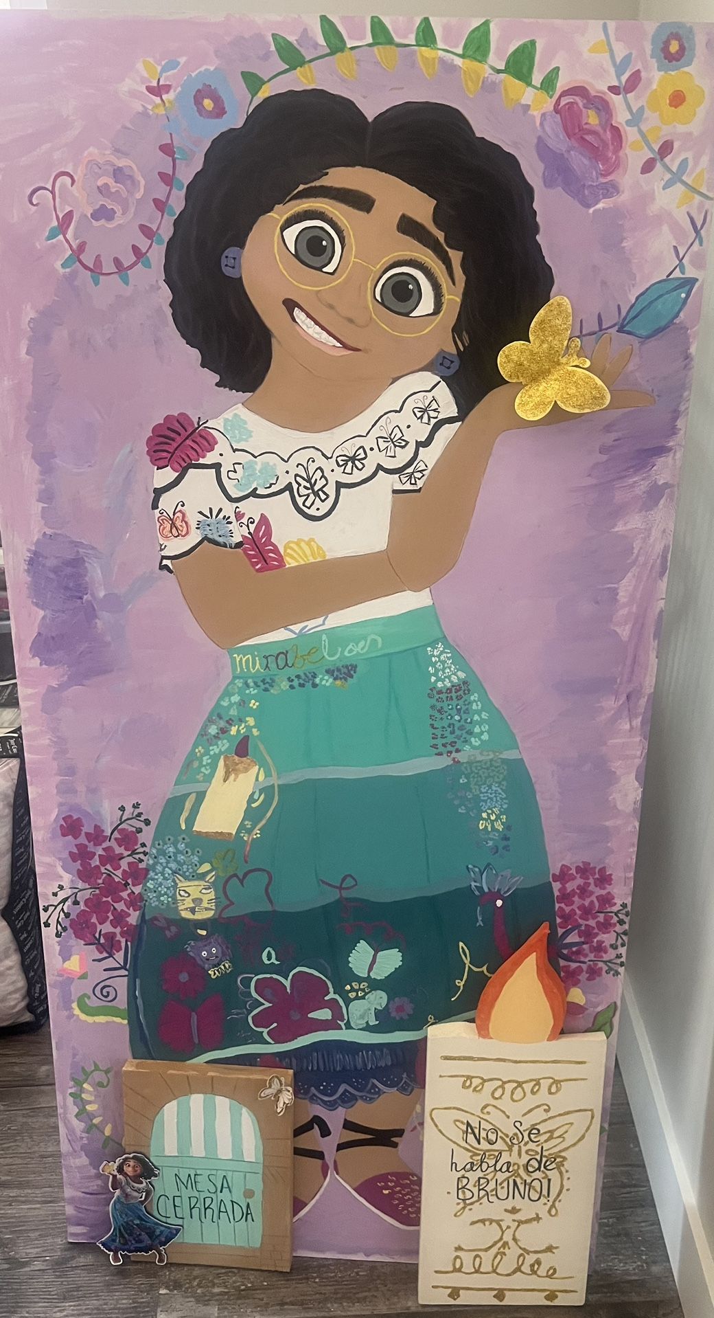if you see this published it is because it is still available In Excellent Condition. It is made of wood and hand painted. Mirabel: 49” x 24”. Mesa Cerrada: 10” x 7-1/2”.. Candle: 18” x 7-1/2”. $$65. All Pick up in Chula Vista