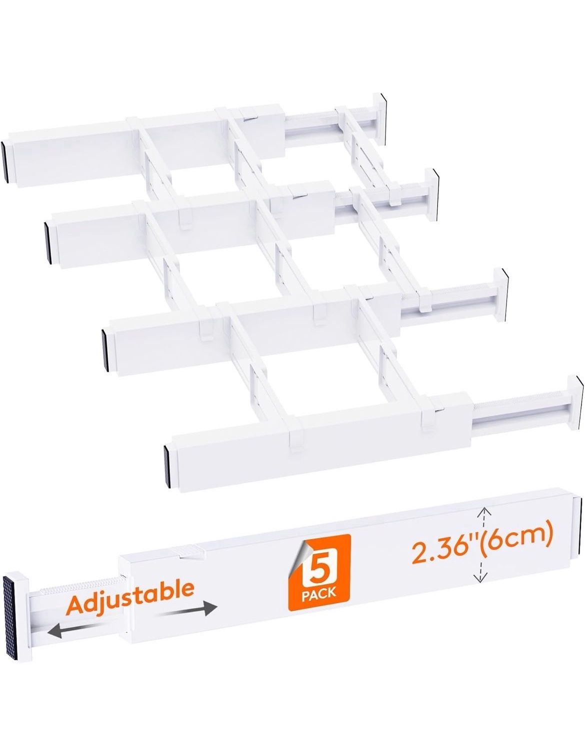 Lifewit 5 Pack Drawer Dividers 2.36" High, 16"-22" Adjustable Drawer Organizer with 8 Inserts for Utensils/Clothes/Makeup, Plastic Expandable Separato