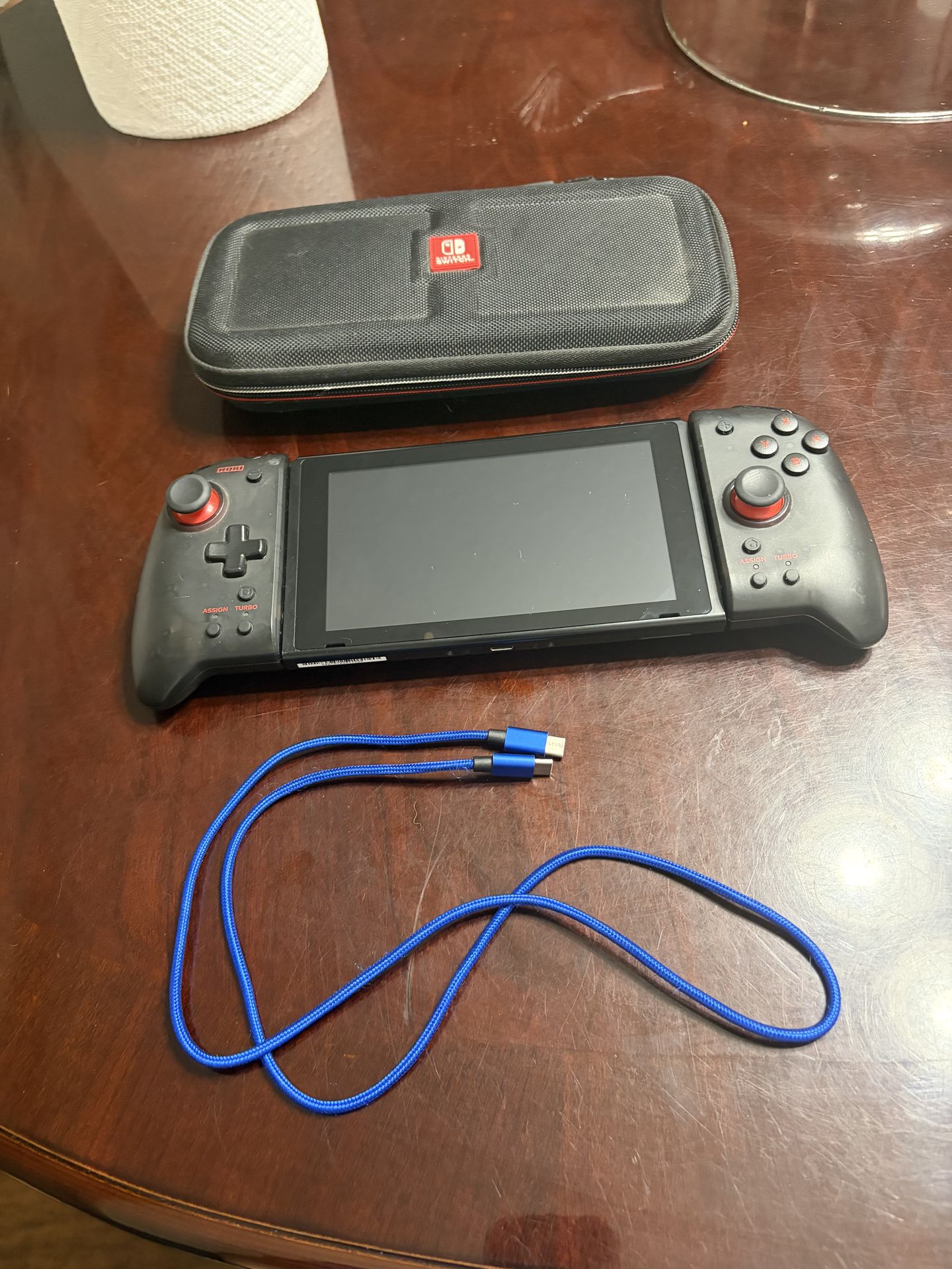 Nintendo Switch – Like-new condition • Screen has minimal scratches • Back is in great shape • Upgraded Hori Joy-Cons included • Travel case included • USB-C charging cable included • Everything works perfectly – no issues • No dock included • No games included Message me if interested!