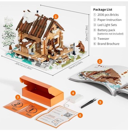 FUNWHOLE Hunting-Cabin Lighting Building-Bricks Set - Retro Wooden Cabin LED Light Construction Building Model Set 2036 Pcs for Adults and Teen $95