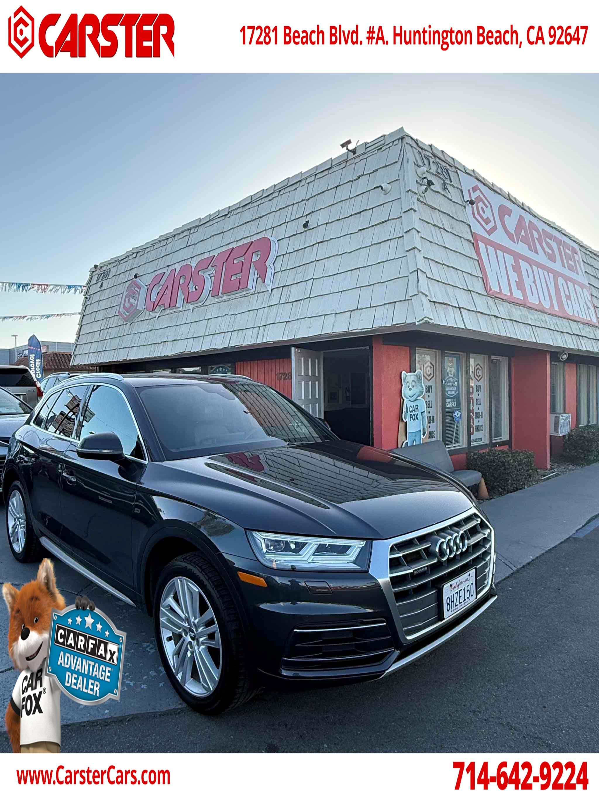 The 2019 Audi Q5 Premium Plus 45 TFSI quattro exudes sophistication and style, cloaked in a stunning Manhattan Gray Metallic exterior. Its athletic yet refined presence is complemented by 19" 5-arm-wing design wheels, which enhance both performance and aesthetics. The interior is a luxurious sanctuary, featuring an elegant Nougat Brown color scheme that perfectly contrasts the rich exterior hue. With its spacious cabin and meticulous attention to detail, this Q5 model ensures a comfortable and inviting driving experience for both driver and passengers. Under the hood, the Q5 is powered by a robust 2.0L 4-cylinder engine, paired with an advanced All Wheel Drive (AWD) drivetrain. This configuration provides a dynamic and responsive driving experience, whether you're navigating city streets or exploring the open road. The Premium Plus trim offers an array of upscale features, including a Bang & Olufsen sound system with 3D sound, immersing occupants in rich and precise audio. For added style and functionality, the Audi beam-rings project a unique and glowing Audi logo onto the ground, enhancing both safety and visual appeal. With a black privacy trunk cover, this Audi Q5 ensures that your cargo is discreetly hidden from prying eyes. The vehicle's design and features reflect Audi's commitment to excellence in engineering and luxury. Whether you're cruising through urban environments or venturing off the beaten path, the 2019 Audi Q5 Premium Plus 45 TFSI quattro offers unparalleled comfort, cutting-edge technology, and timeless style in every journey. It's more than just a vehicle; it's a statement of elegance and performance that stands out in the luxury SUV market.