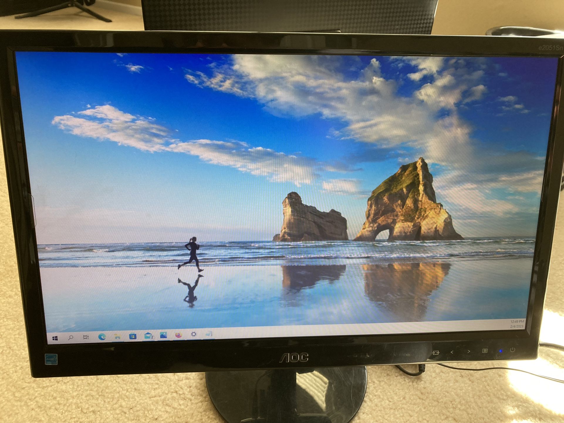 AOC Monitor (2 for sale). Price is for each. Includes power cord. Product Information The AOC E2051SN delivers on both style and function. This widescreen monitor features a dynamic contrast ratio of 20,000,000:1 and supports over 16 million colors at a 16:9 aspect ratio. The result is a LED display that is vivid and incredibly life-like. Speakers are not built-in to this AOC computer monitor, giving users the freedom to choose their own sound system. Gamers will appreciate the quick 5 ms response time of the AOC E2051SN, ensuring accuracy during gameplay. Weighing in at only 4.2 pounds with dimensions of 18.9 x 15.4 x 7.0 inches, this widescreen monitor is ultra-slim and lightweight. Energy Star compliance and the absence of mercury in this AOC computer monitor make it environmentally friendly and safe to use. For serious gamers or just casual computer users, the AOC E2051SN is an ideal choice for a monitor that provides high-definition quality. Product Identifiers Brand: AOC Model:E2051SN Product Key Features: Refresh Rate:60 Hz Screen Size:20 in Aspect Ratio:16:9 Additional Product Features Brightness: 200cd/m² Display Type: LED LCD Monitor Color: Piano Black Regulatory Approval: Energy Star