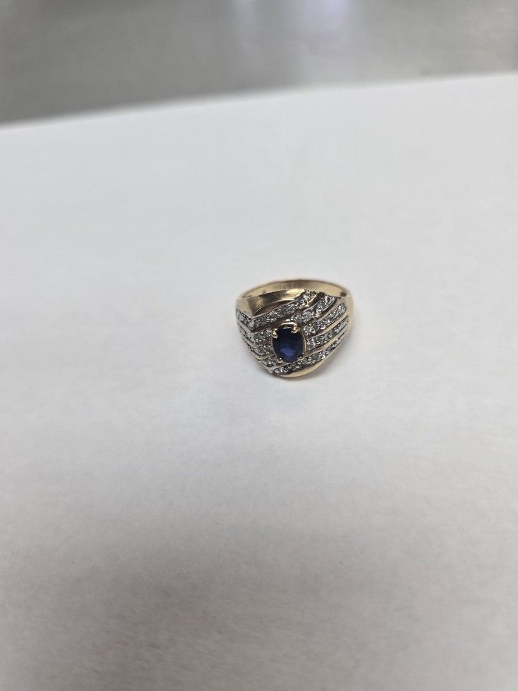 10k Gold Mens Ring White Zirconia & Blue Sapphire Size 10