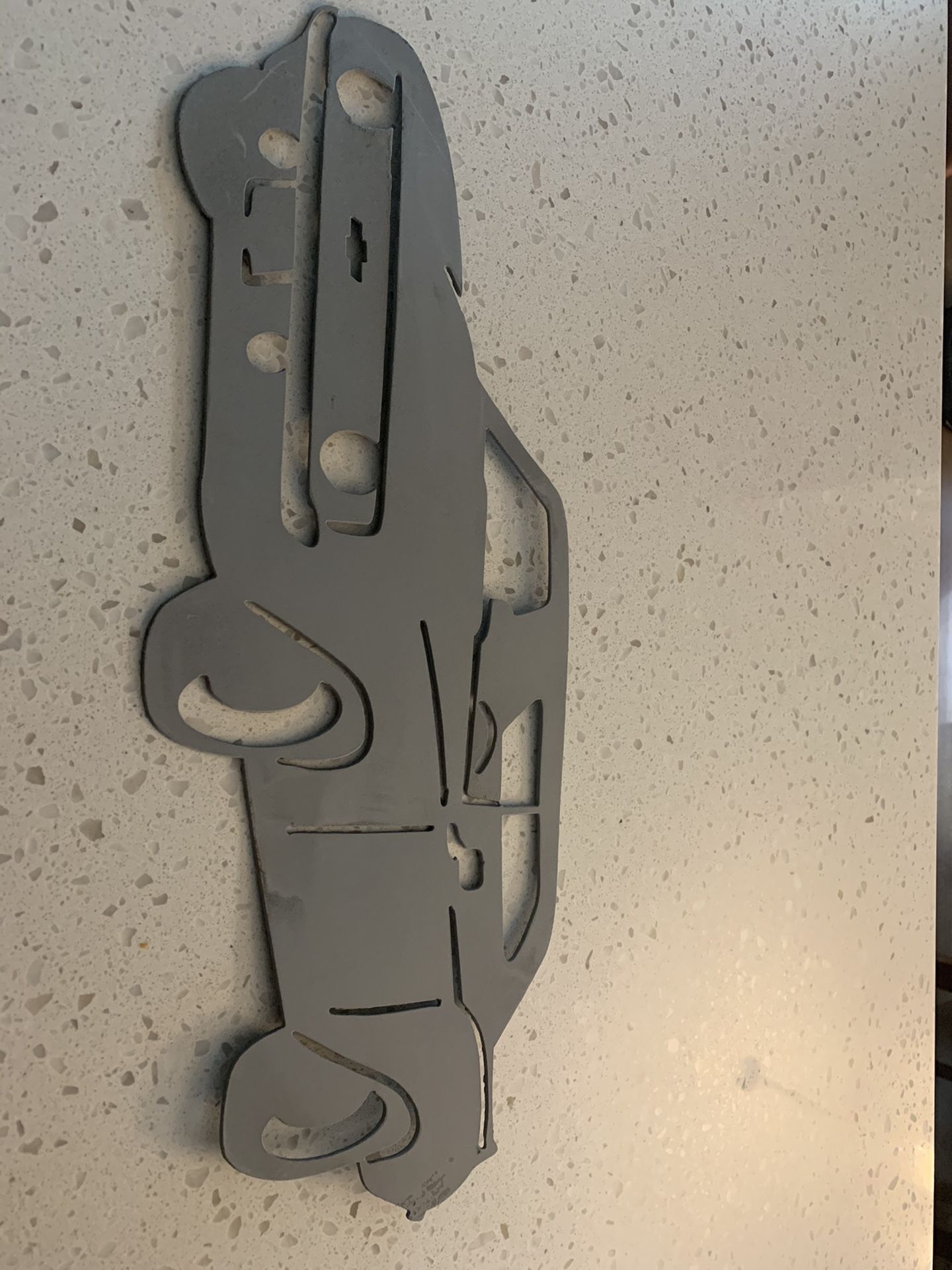 This was made for me by accident. As we are Mustang collectors and not Camaro. But it’s super nice anyways. Spray paint it any color and add some pop to the backyard, garden or garage. #camaro #art #metal #car #christmasgift #OBO