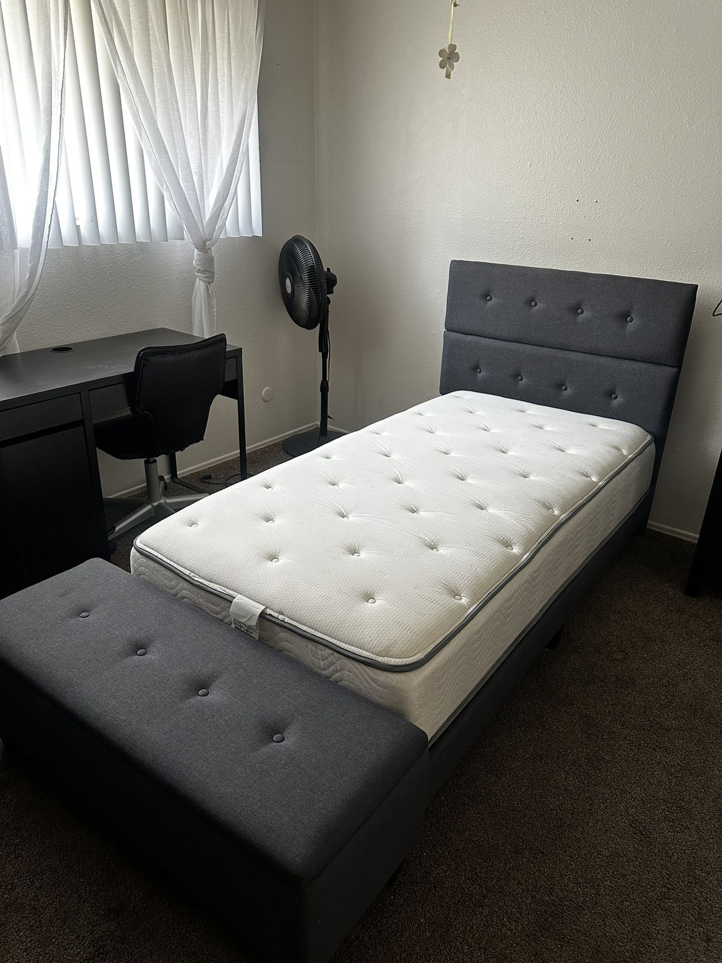 Like new, barely used less than a year. No mattress. Twin bed frame w/ attached chest storage. Disassembled. Pick up only.